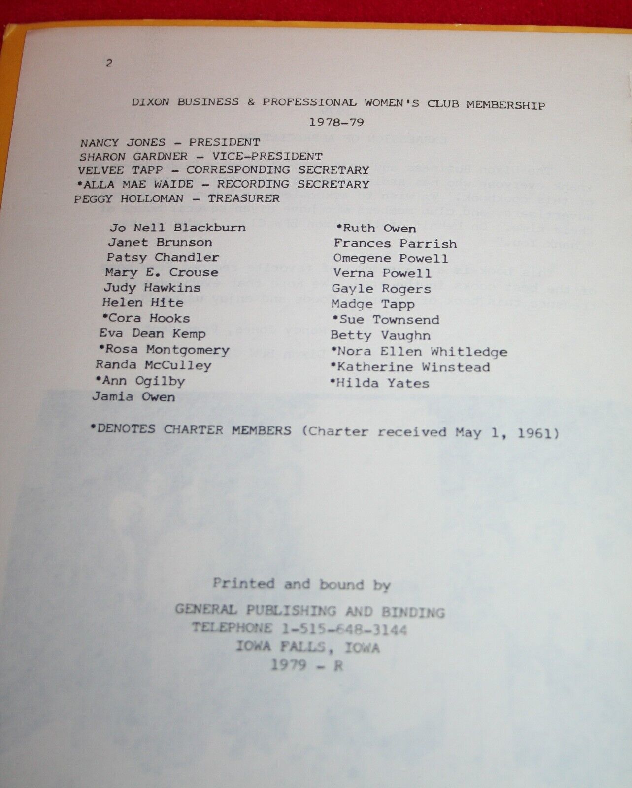 1979 Cookbook NFBPWC Dixon Kentucky Business & Professional Womens Club COOKBOOK