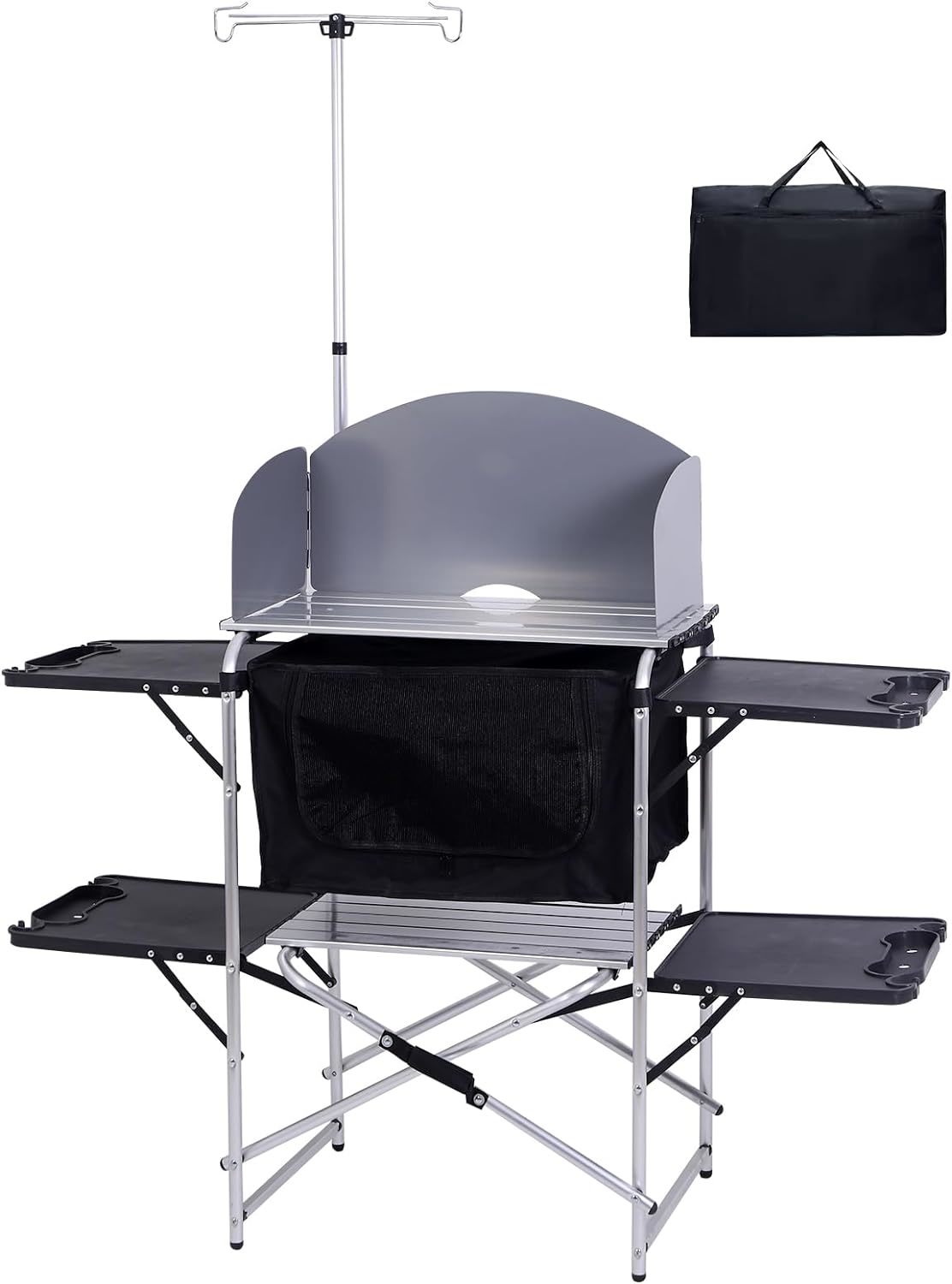 Nice C Camping Table, Camp Kitchen, Outdoor Cooking Station With Cabinet, Black