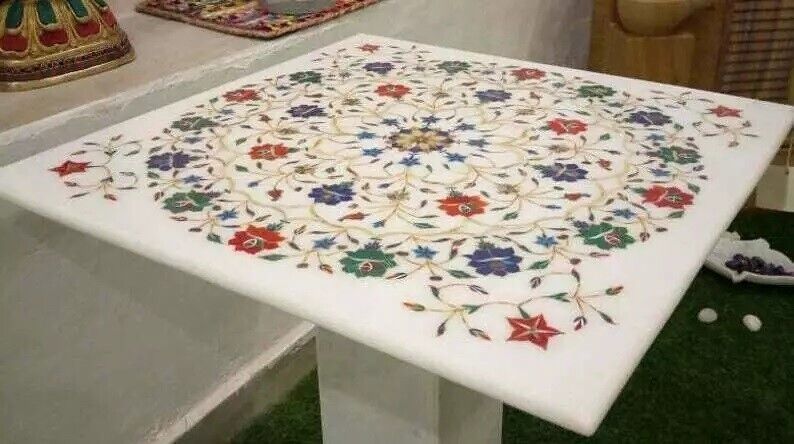 2' Square White Marble Center Table Top Inlay Handmade Work Antique Home Decors