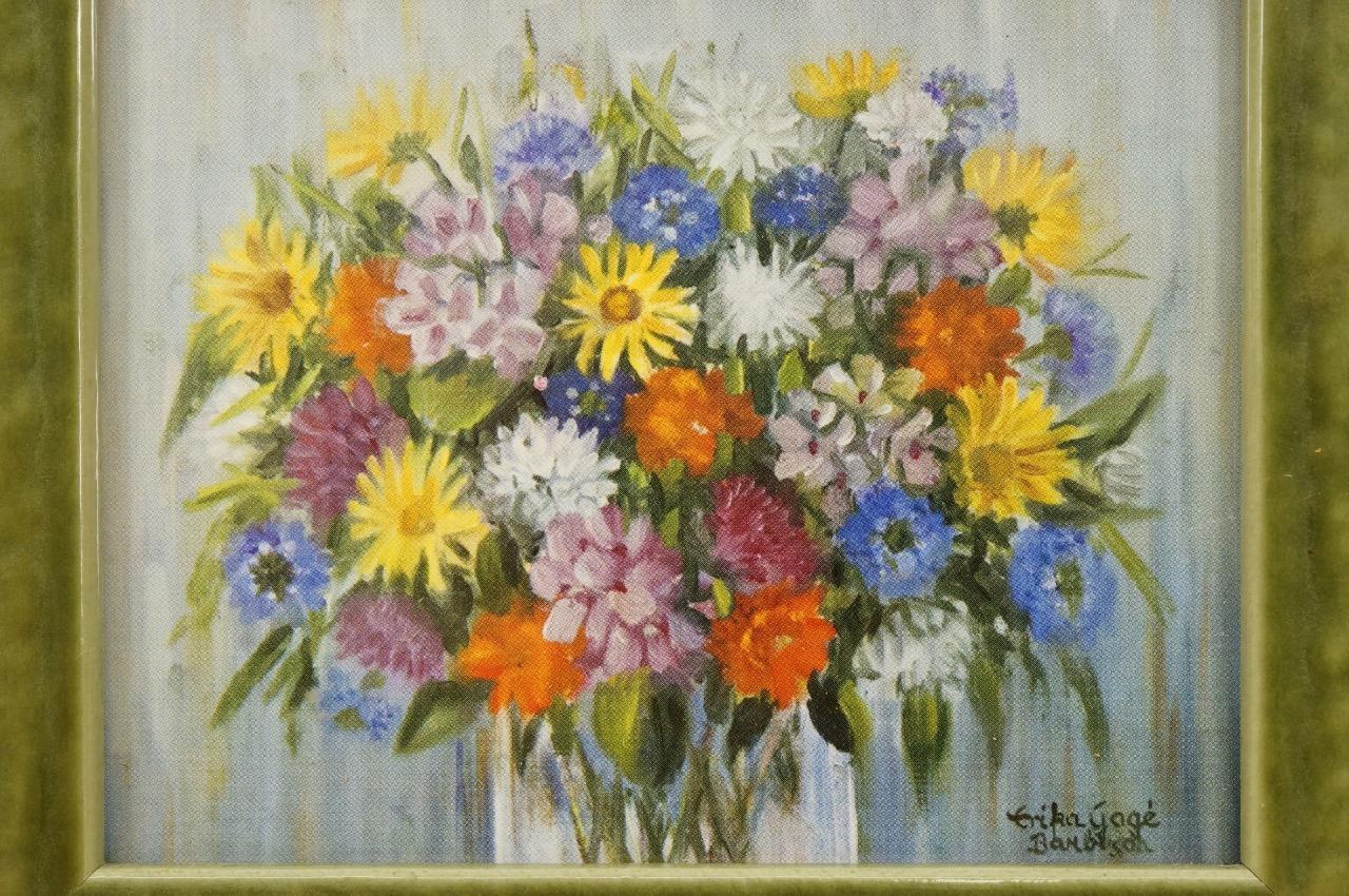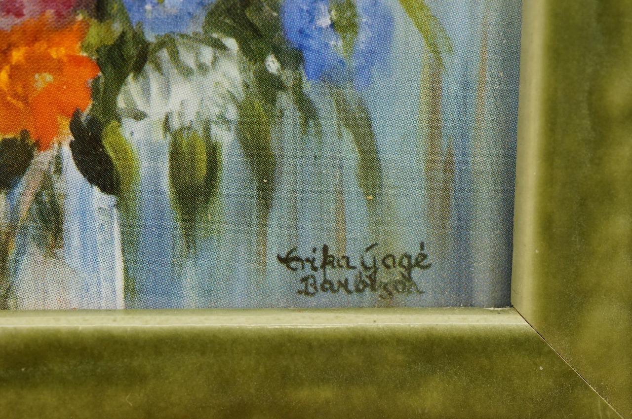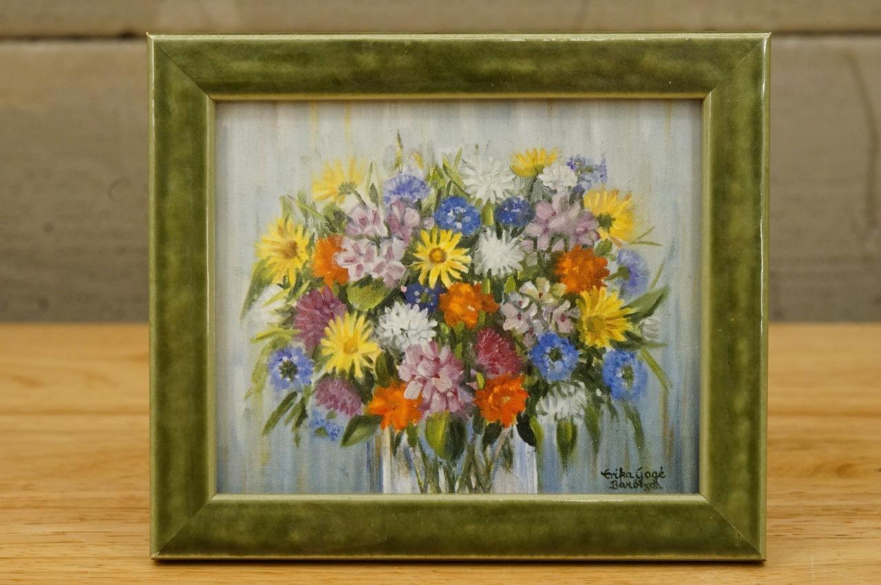 Framed Art Print Miniature Erika Gage Barbizon WIldflower Bouquet Ceramic Frame - measures 5.25" by 4.5" - stamped with the artist info on the back.