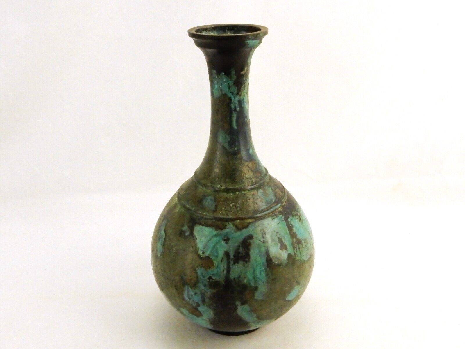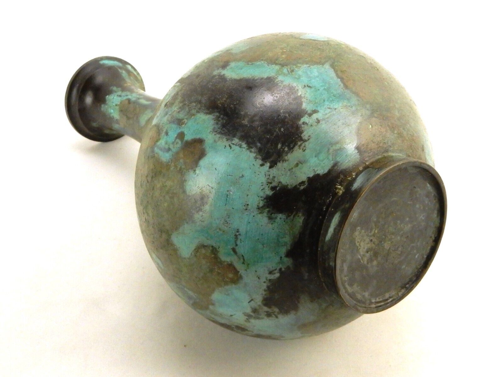Beautiful bronze bud vase with narrow bottle neck and bulbous bottom