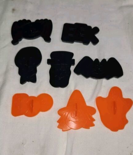 Here is a good used lot of Halloween cookie cutters. Plastic. Woodridge brand.