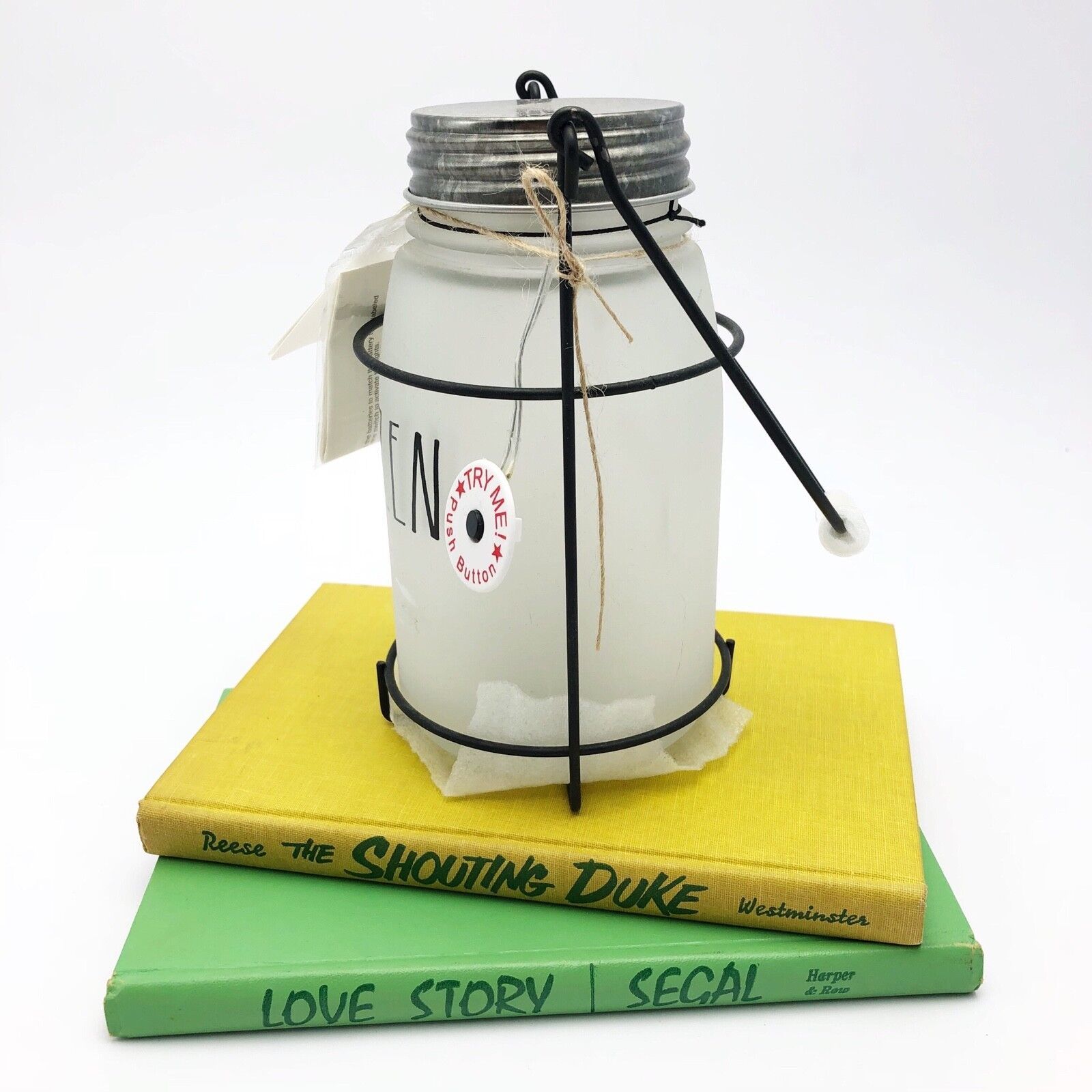 RAE DUNN ZEN Lantern Mason Jar in Metal Hanging Fairy Lights