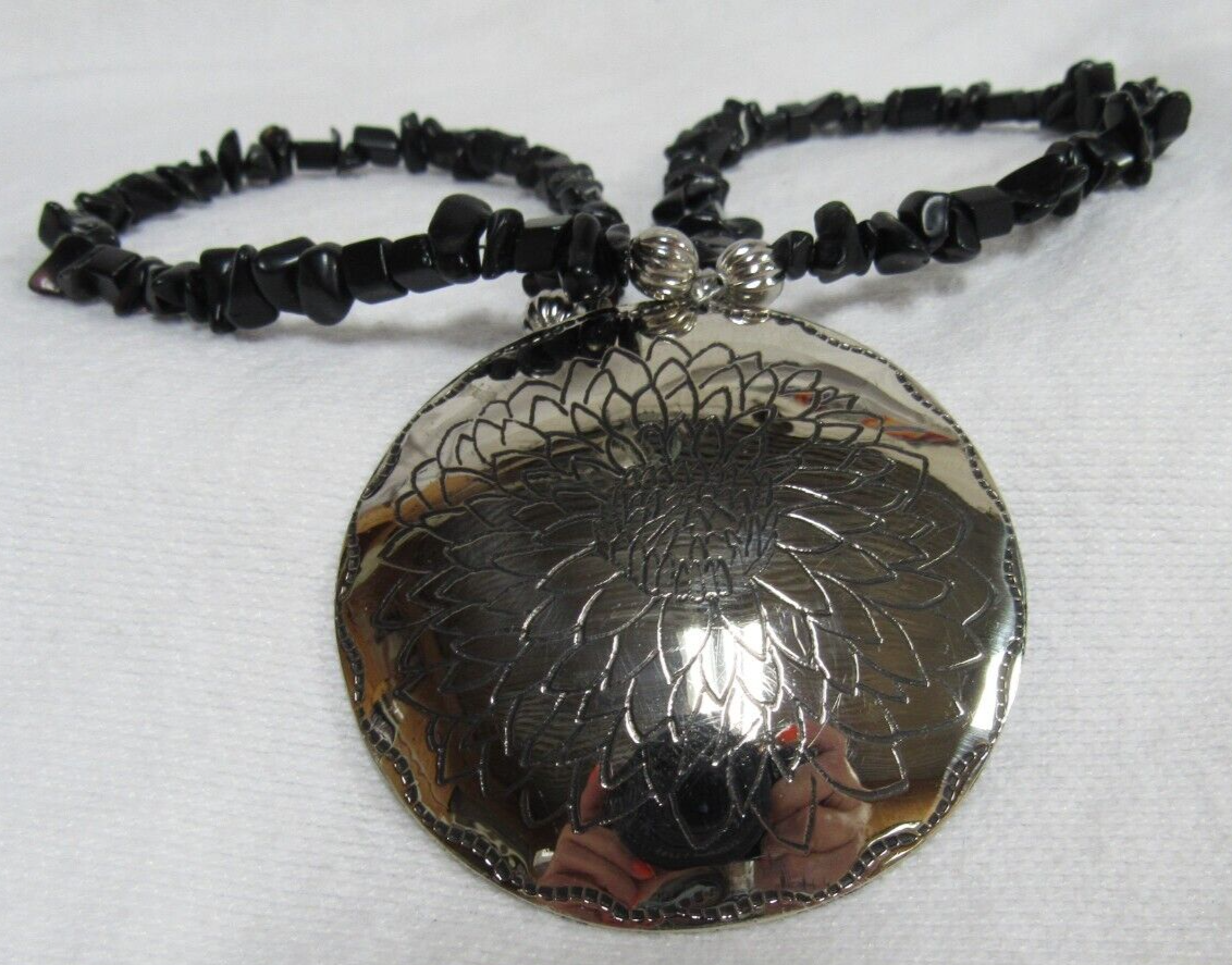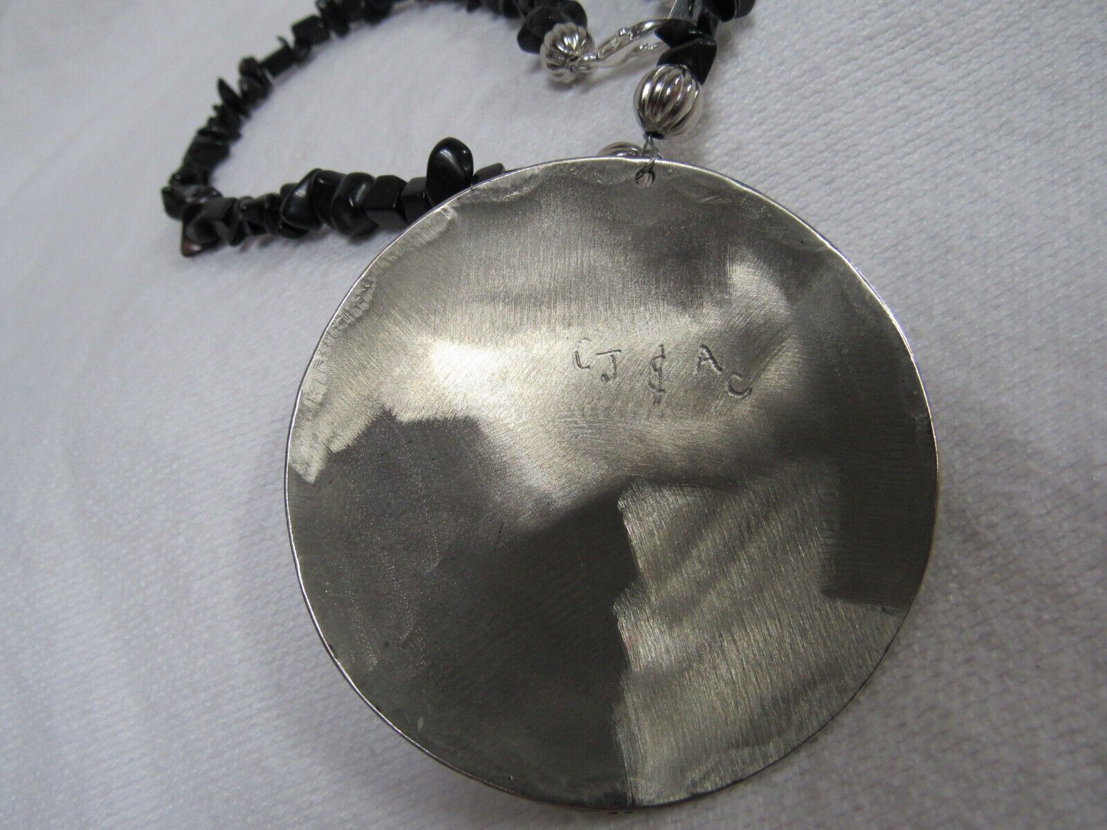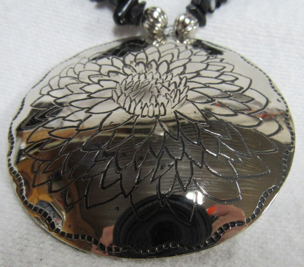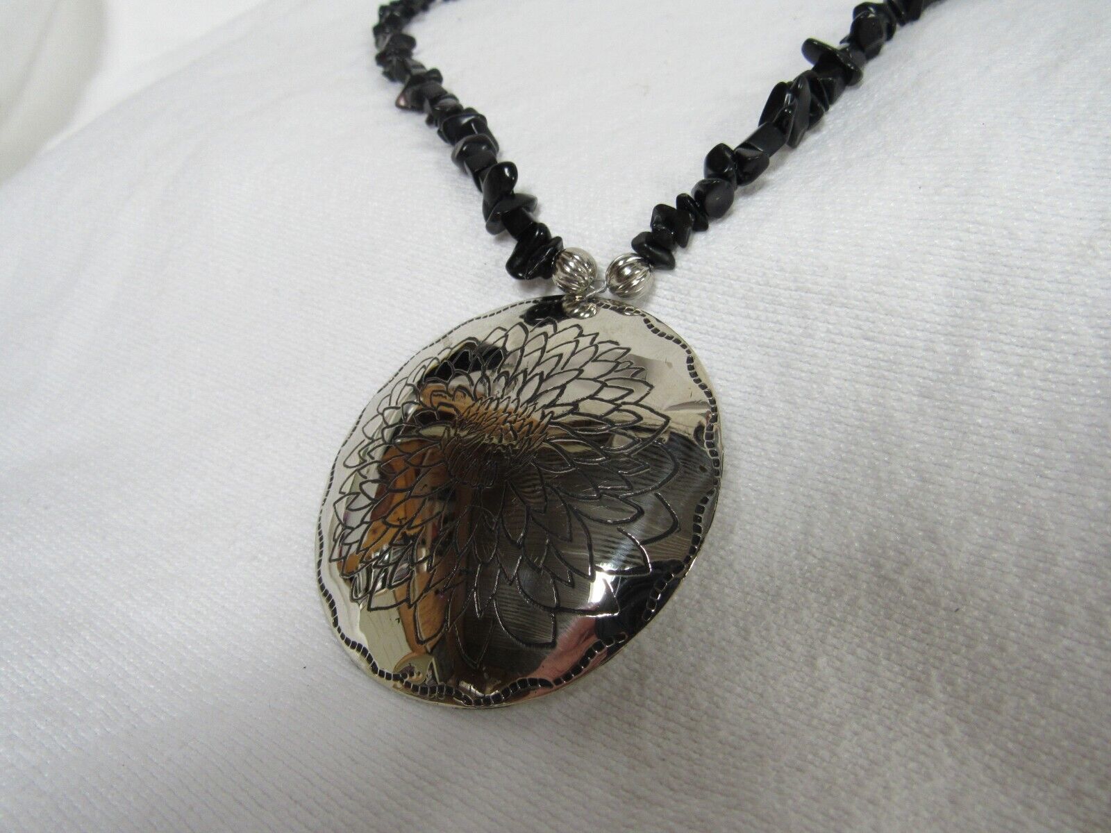 Here at Debi's Attic Gold in Wewoka, Oklahoma we have a New Native American Seminole, Dahlia Flower Medallion with a Black Rock Necklace Handmade by Charley Johnson, a local Seminole Tribal Member.