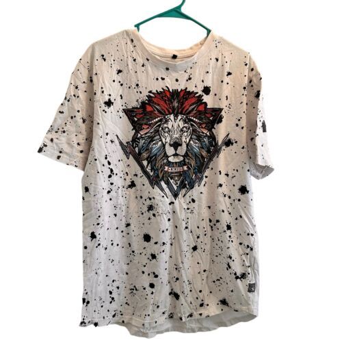 This vintage Southpole t-shirt is a rare find for any Y2K enthusiast. Featuring a stunning AOP paint splatter design with a slightly raised LIONS HEAD in the middle! Designed, with a grunge and gothic vibe, this t-shirt is perfect for anyone looking to add some edge to their wardrobe. The crew neck and short sleeves provide a comfortable fit, and the regular fit is perfect for a casual day out or a night on the town. This t-shirt is made from high-quality materials and is sure to last for years to come. Don't miss out on the opportunity to own a piece of fashion history.