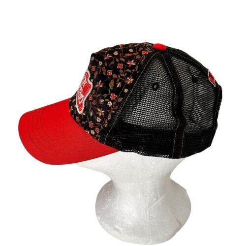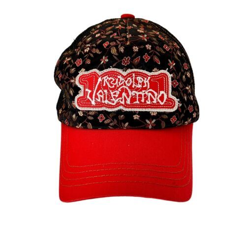 RUDOLPH VALENTINO 1921 ADJUSTABLE SNAPBACK TRUCKER/MESH HAT/CAP RED/BLACK FLORAL