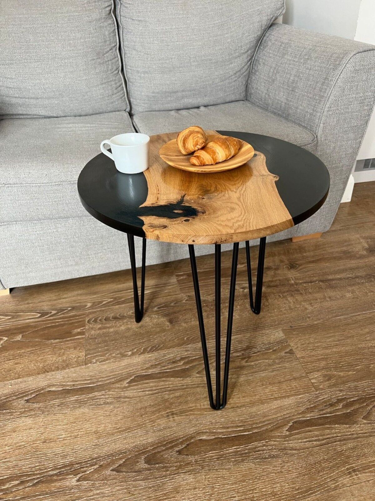 24"x24"in Black Matt Epoxy Resin Coffee Table, Live Edge Table, Table Top