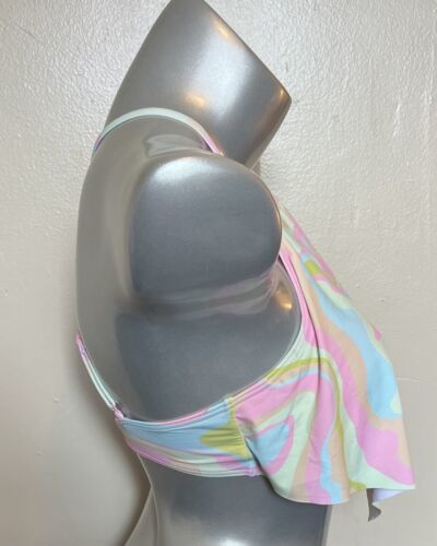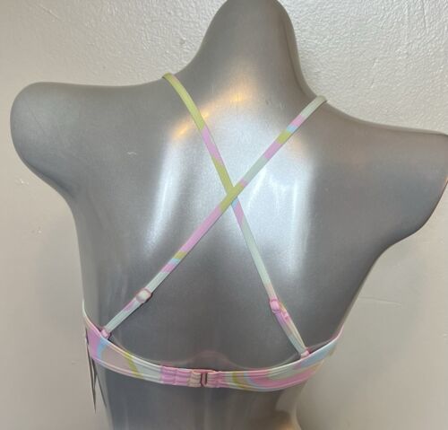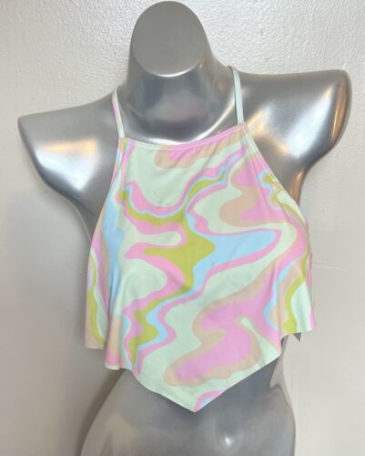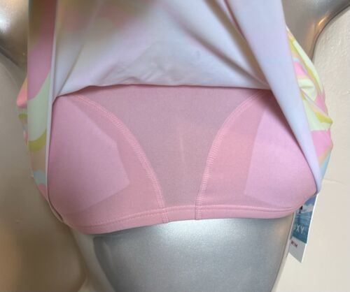 Roxy Womens Cropped Swimsuit Top Size Medium Tropics Hype Pink Blue Swirl NEW
