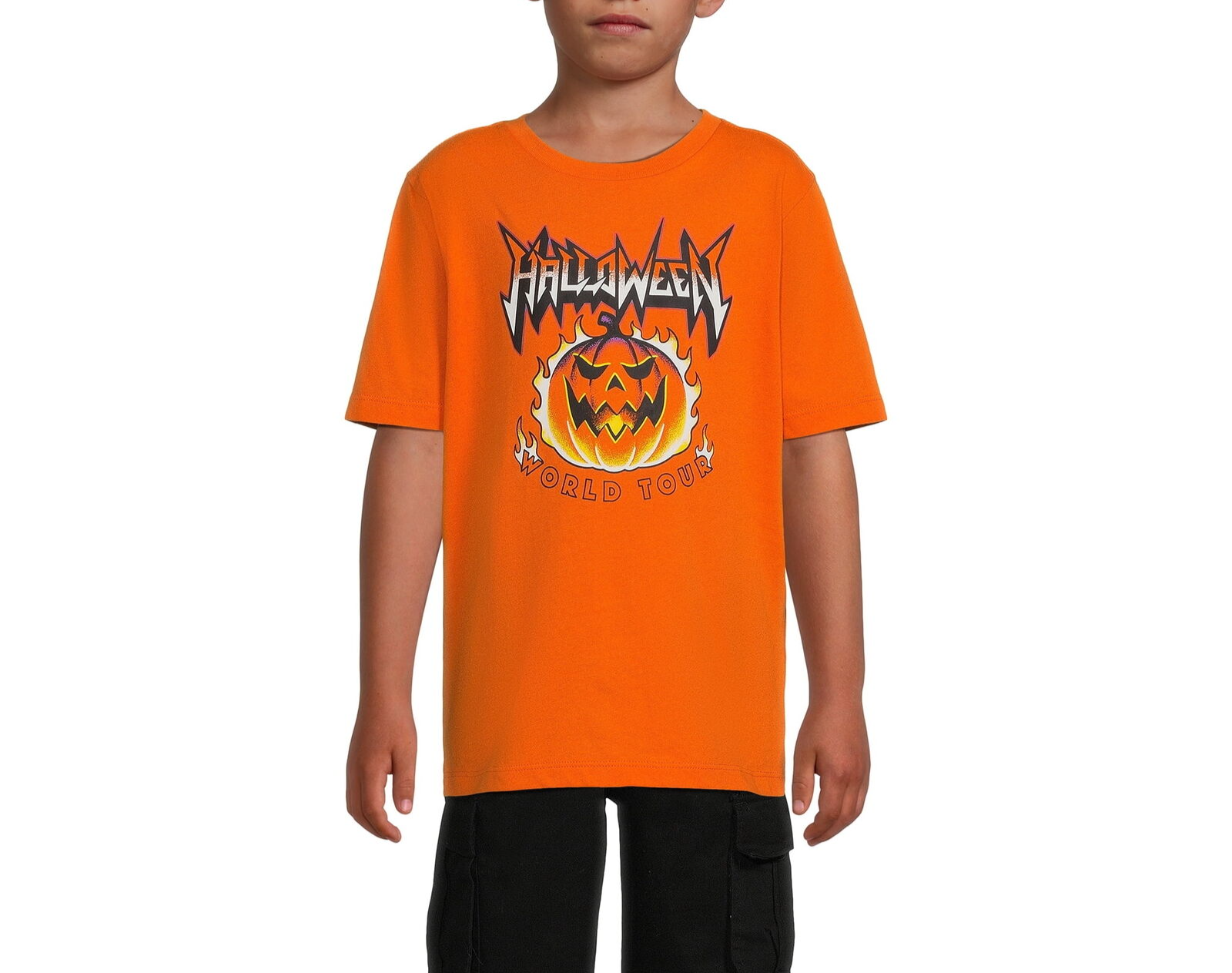Wonder Nation Boys Short Sleeve Halloween Graphic T-Shirt, Orange Sun M (8)