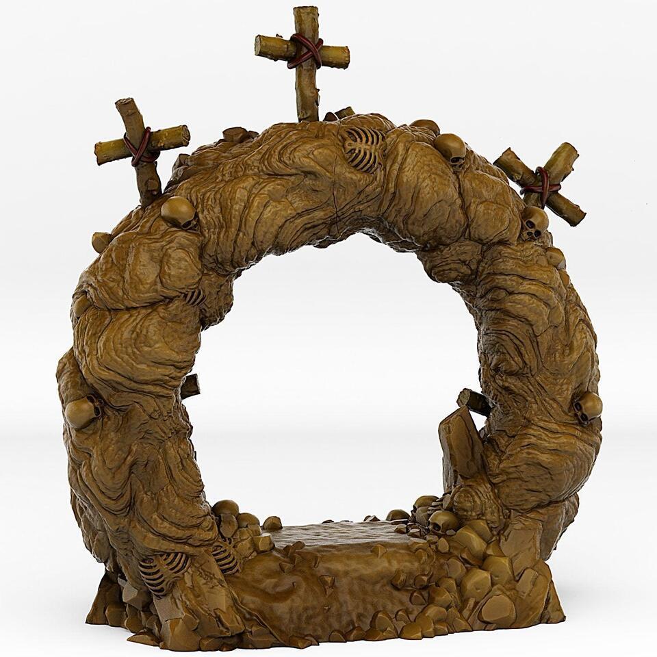 3D Printed Fantastic Plants and Rocks Cemetery Portal With Its Cross Effect 28mm