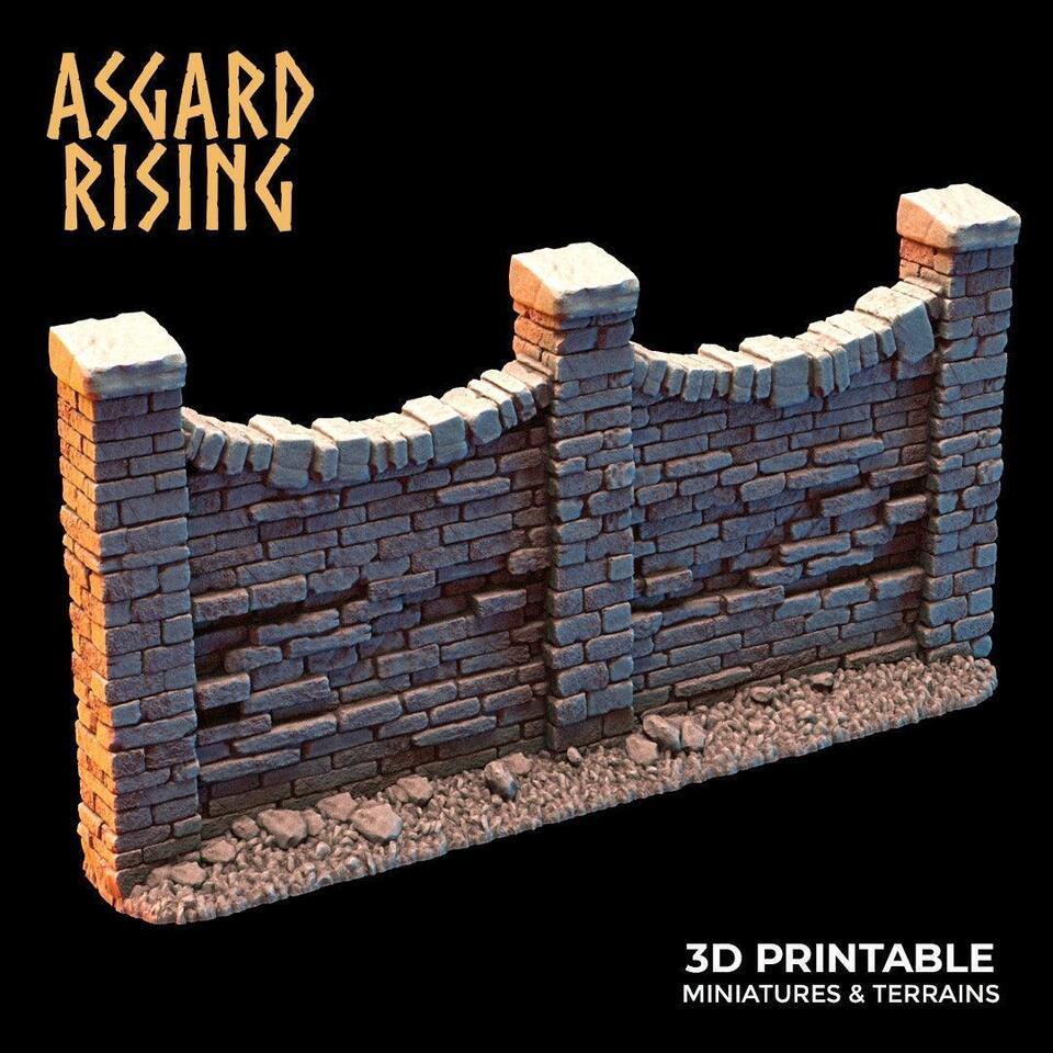 3D Printed Asgard Rising Cemetery Stone Wall Fence Set 28mm-32mm Ragnarok D&D