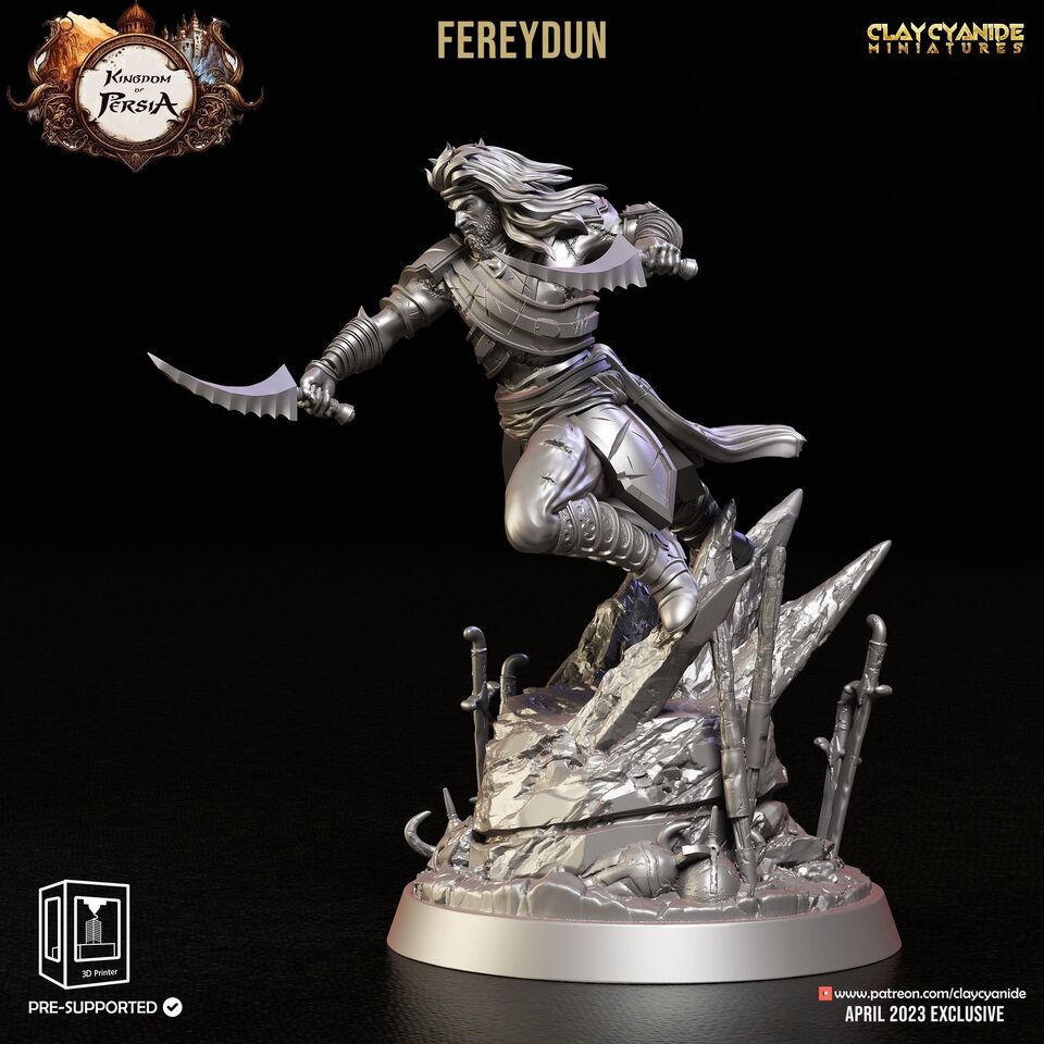 3D Printed Clay Cyanide Fereydun Kingdom of Persia 28 32 mm D&D