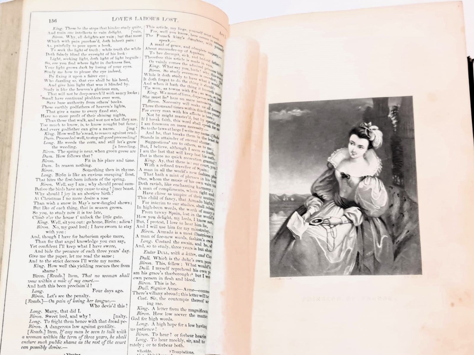 Rare one volume complete works of Shakespeare. Contains biographical sketch, the complete text of the 37 plays, followed by "Venus and Adonis," "Rape of Lucrece," the Sonnets, "The Passionate Pilgrim," and "A Lover's Complaint," with a rear glossary. Illus. w/ frontis. portrait + 11 additonal steel engravings by H. W. Smith, still protected with tissue guards. Large 8vo half-leather book. xii + 1027pp + 11plates.