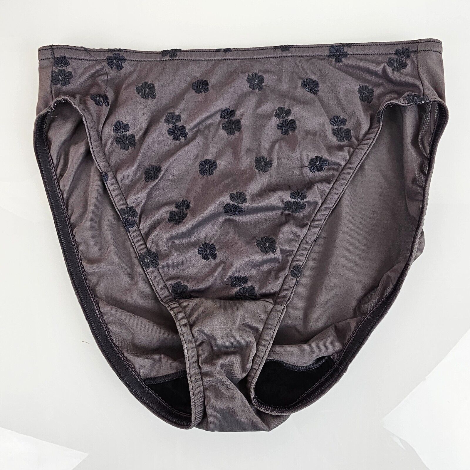 Warners Flower Charm VTG Panties women 7 Semi-Sheer High cut Waist Gray
