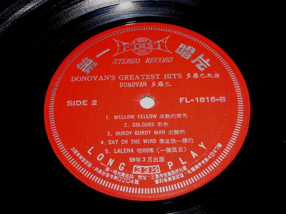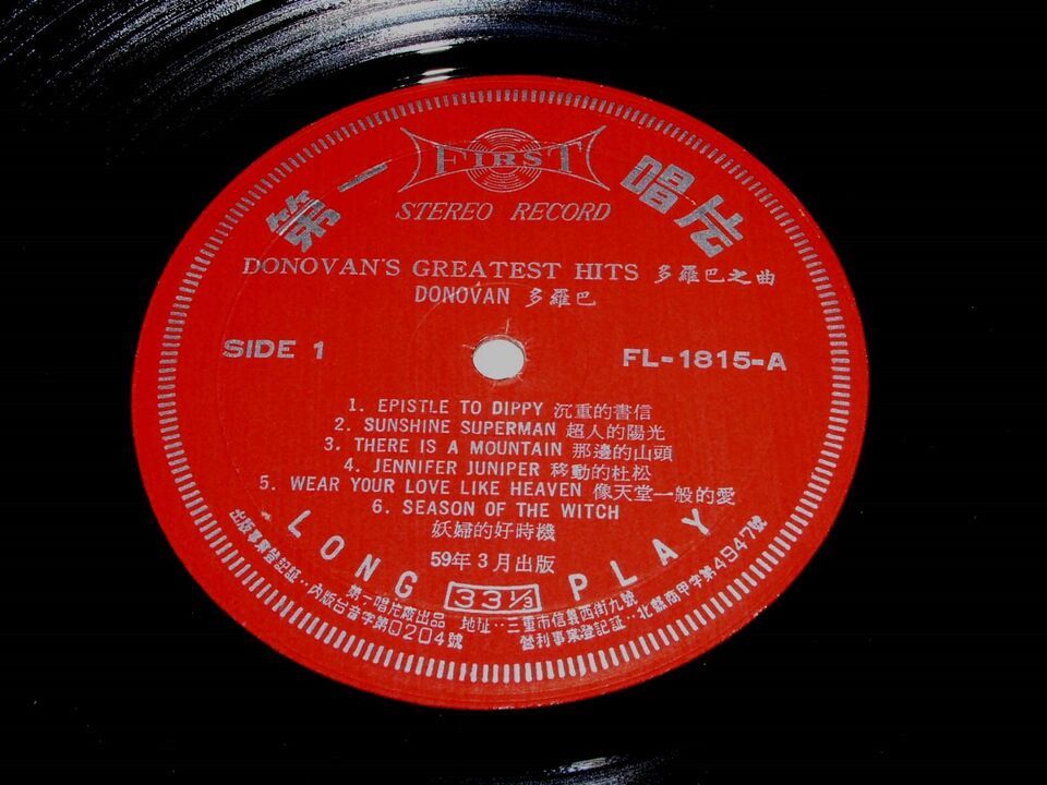This is a vintage Taiwan import album entitled, "Donovan's Greatest Hits". Record label First FL-1815.