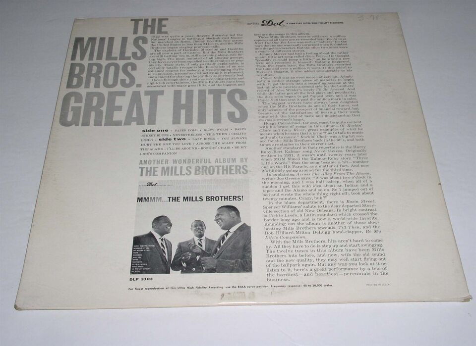 This is a vintage lp entitled, "The Mills Bros. Greatest Hits". Record label Dot DLP 3157.