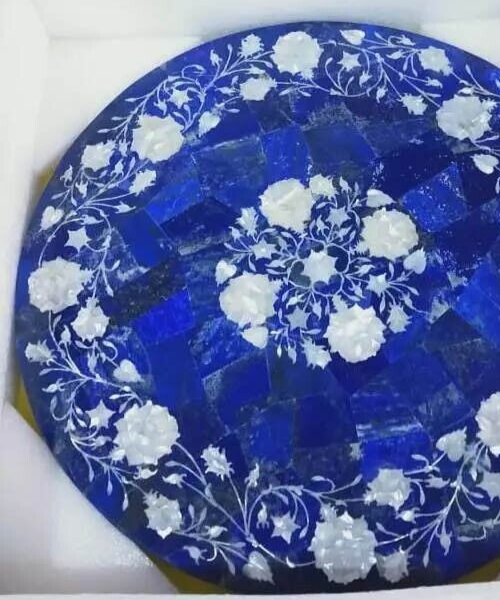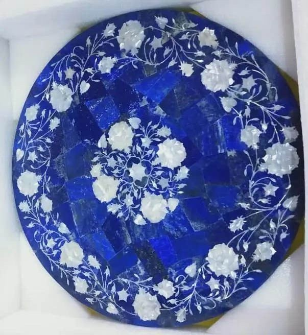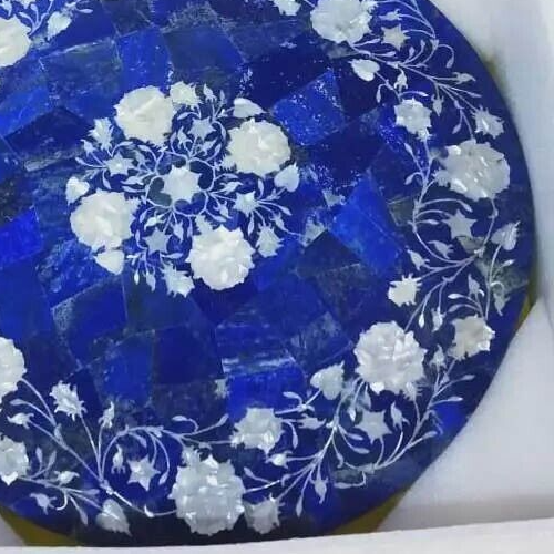 18" Round Blue Marble Coffee Table Top Lapis Gemstone Marquetry Art Outdoor Deco