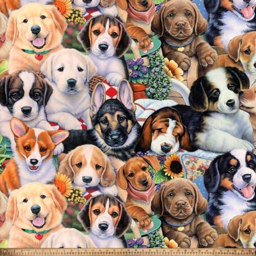 Cotton Dogs Words Attributes Animals Puppies Fabric Print by the Yard D758.45