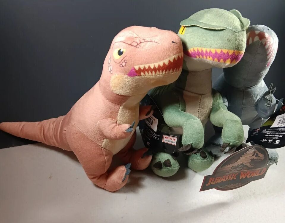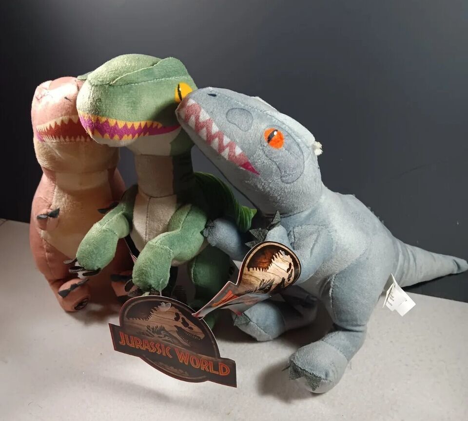 Jurassic Park World Plush Set of 3 Dinosaurs Raptor 8” Soft Stuffed 2024 New