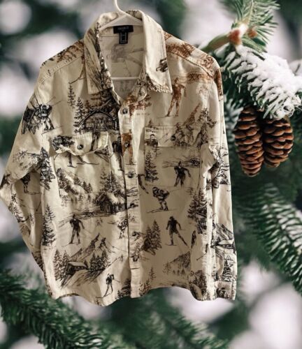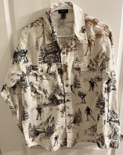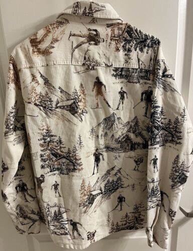 Forever 21 Corduroy Mens SIZE Medium Snow Ski Jacket Button Up cream & brown EUC