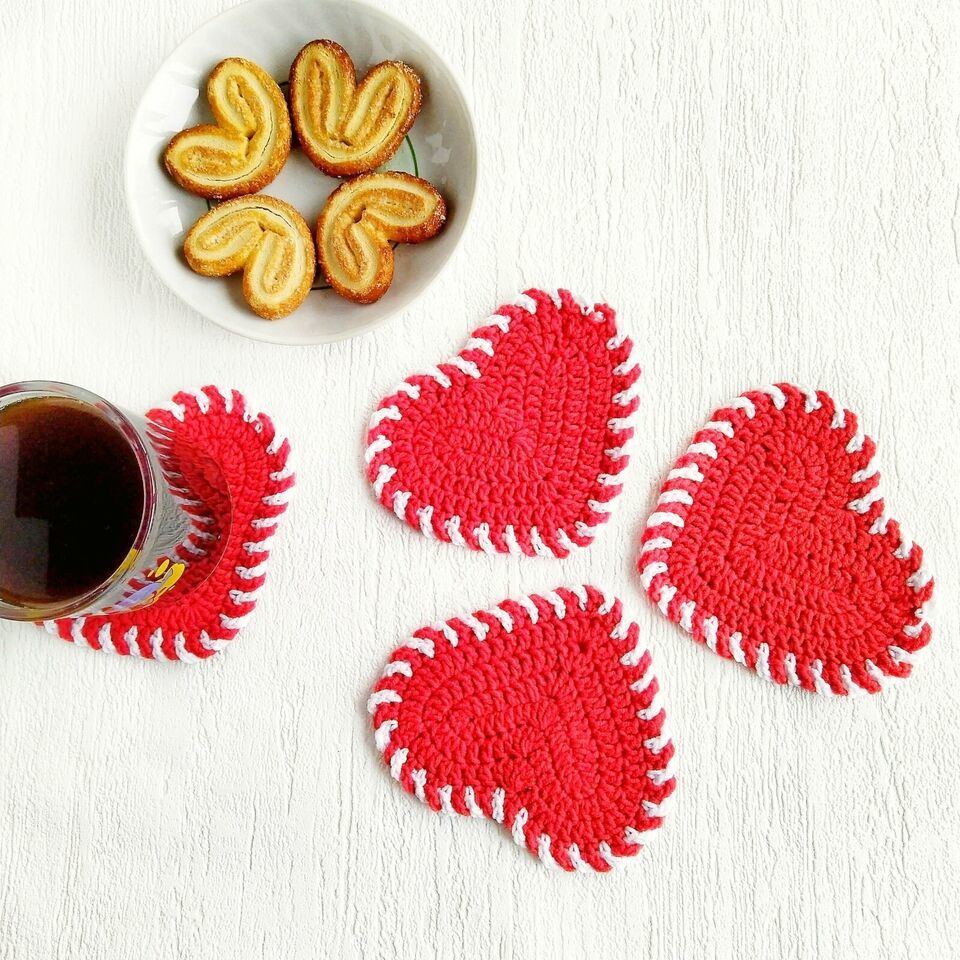 Valentines day Gifts for Her Heart Handmade Coasters set of 4 for Drinks
