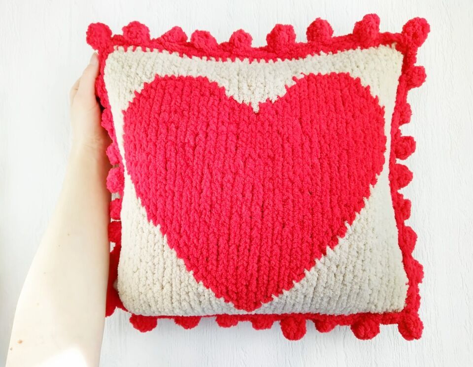 Pillow Covers Heart Mother's day Gift Pillowcase Boho Hand Knit Pillow 16x16