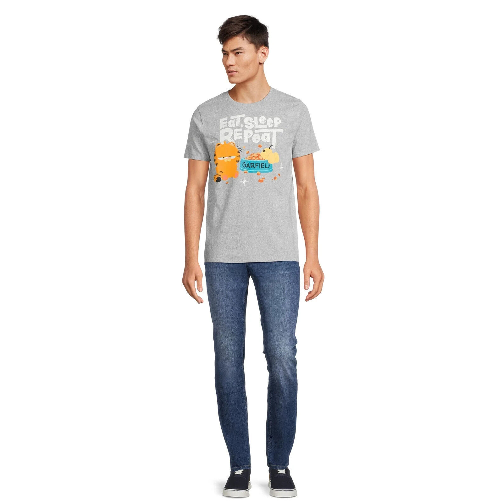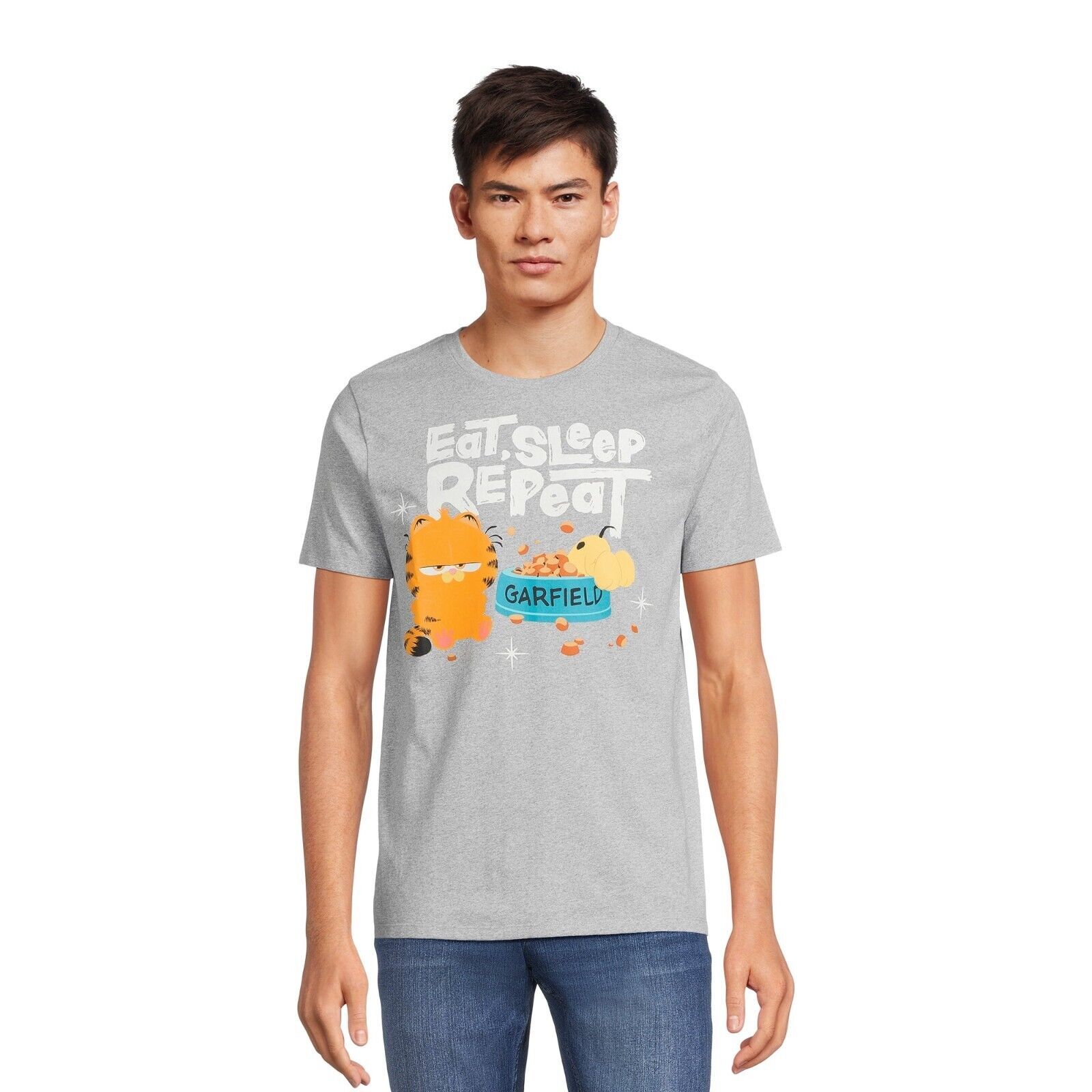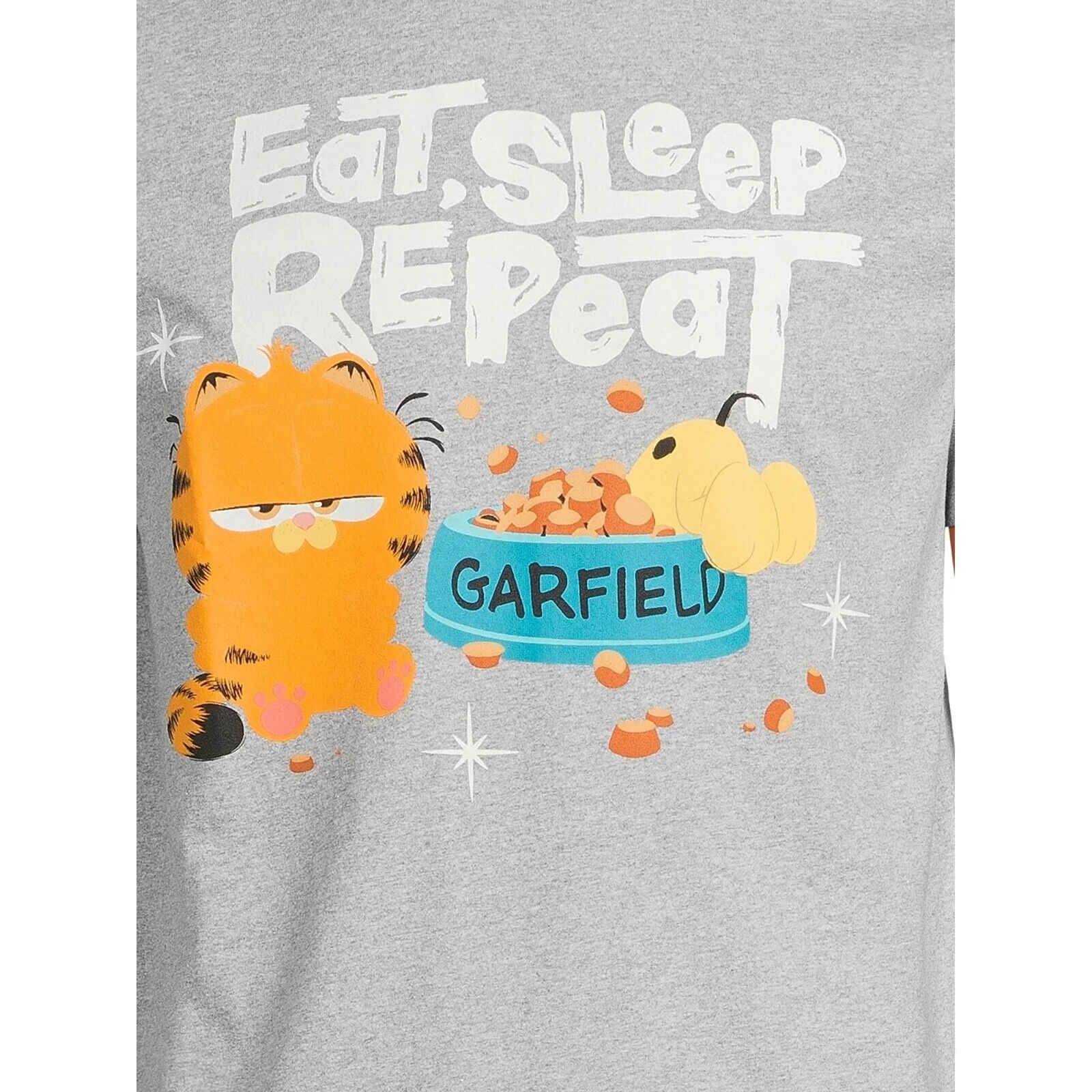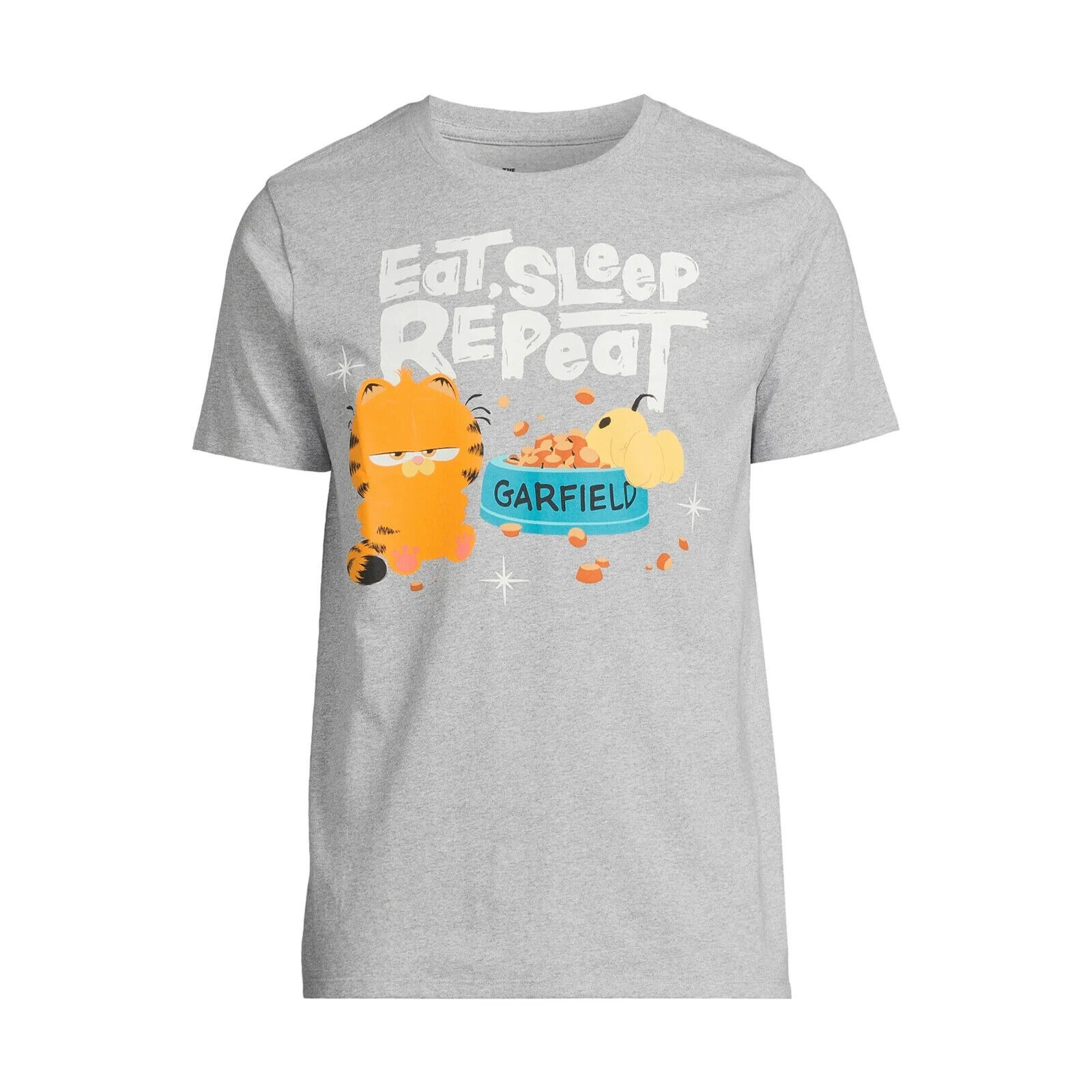 Garfield Men's Apparel 'Eat Sleep Repeat' Graphic T-Shirt, Gray Size 2XL(50-52)