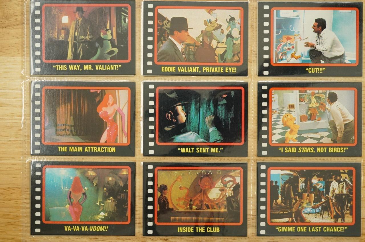 1987 Topps Who Framed Roger Rabbit Movie Trading Cards Lot Set Break 72 Cards - 72 cards total - not a complete set. All well kept in protective sheet pages. No smoke or pet odors.