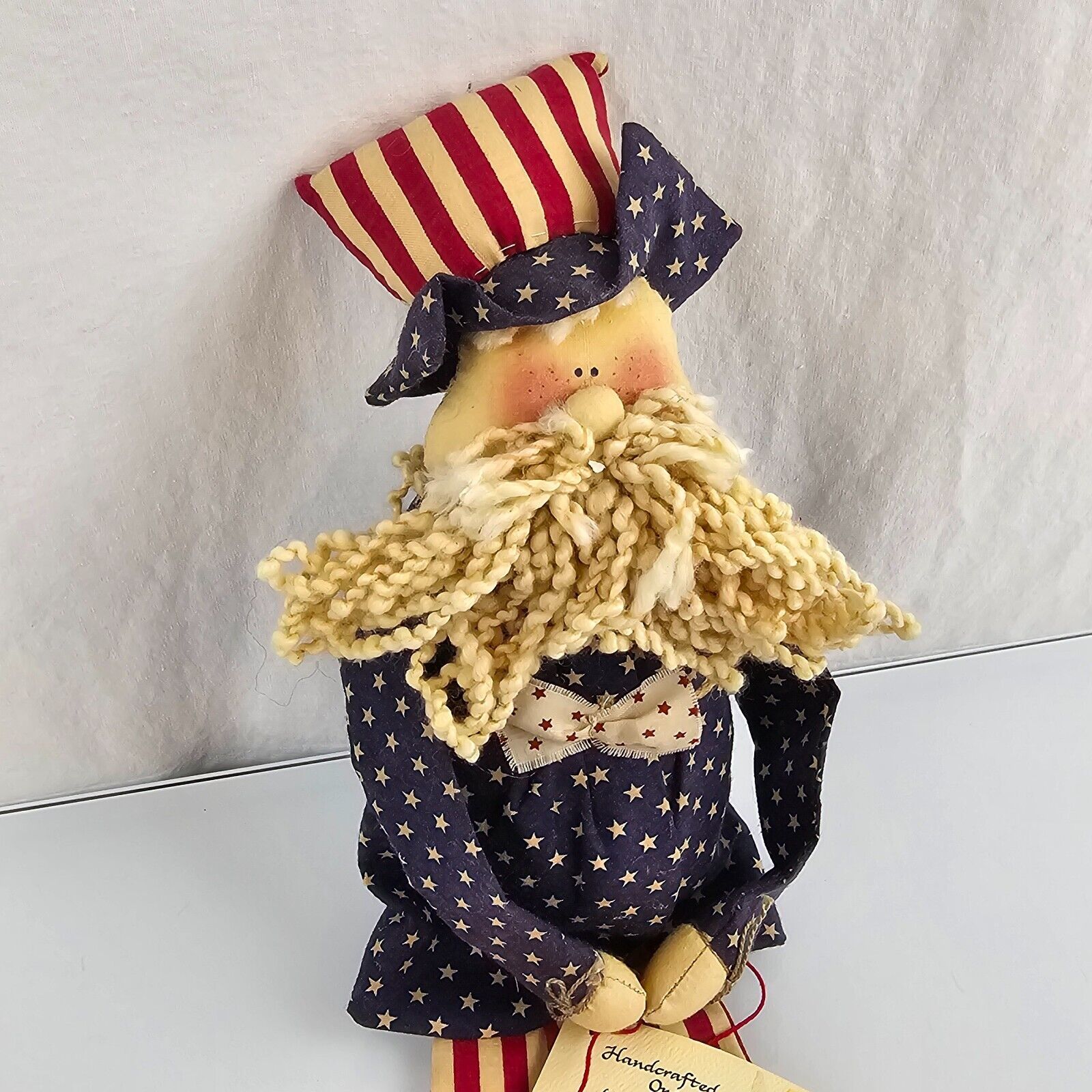 Primitive Folk Art Rag Cloth Doll Americana Vintage Uncle Sam 4th of July 18"