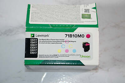 New Genuine Lexmark Magenta Toner Cartridge 71B10M0 For Lexmark CS317, CS417, CS517 CX317, CX417, CX517 New- Open Box! *Please Reference Images* SAME DAY SHIPPING!! For faster shipping service, please send us a message or contact us. Copier Clearance Center Copier Clearance Center was established in 1993. We buy and sell both domestically and internationally and have wide assortment of used copiers, fax machines and printers of all brands. All of our copiers are in house and available for your inspection. They all have been tested and rated for functions, cosmetics and overall appearance. We also sell genuine accessories of all popular brands. Our accessories include toners, imaging units, developers and copier parts such as fax board, fixing unit, fuser unit, roller, cleaning brush, drum blades etc. For more detailed information on our current inventory of Copiers and Accessories all potential buyers or their representatives are welcome to give us a call. We are more than happy to assist you with the pricing and guide you to find the copiers you wish to buy. Best Regards, On-Line Sales Team Copier Clearance Center Business Hours (Pacific Time): Monday-Friday: 9:00 am to 5:30 pm Copier Clearance Center Promo Video - YouTube Video will open in a new windowUsing the App? Paste link into a browser window: [isdntekvideo] All product and company names are trademarksTM or registered trademarks of their respective holders. Use of them does not imply any affiliation with or endorsement by them.