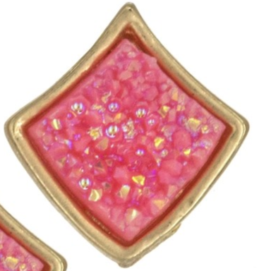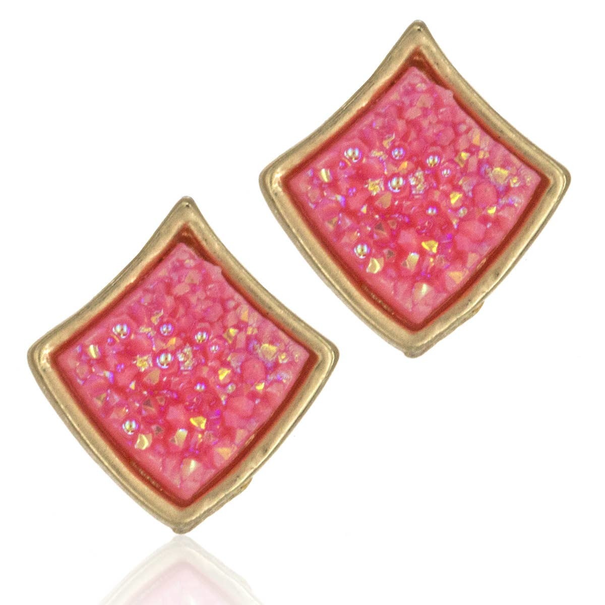 Druzy Stone Square Diamond Shape Stud Earrings Hot Pink