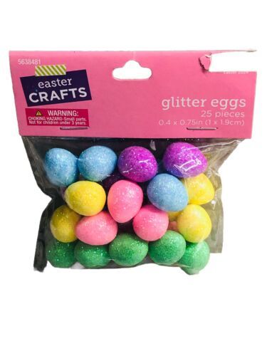 Add some Easter cheer to your home with this set of 25ct mini foam eggs. Measuring 0.4x0.75 inches, these eggs are perfect for creating colorful and modern Easter baskets. The glittery pastel colors and seasonal theme make them a great addition to any room in your home. These eggs are made of durable metal and are sure to bring a smile to your face and to your kids. Whether you're using them for decoration or as a fun activity, these eggs are a must-have for any Easter enthusiast. ShipN24Hours. Inventory Location MW1090