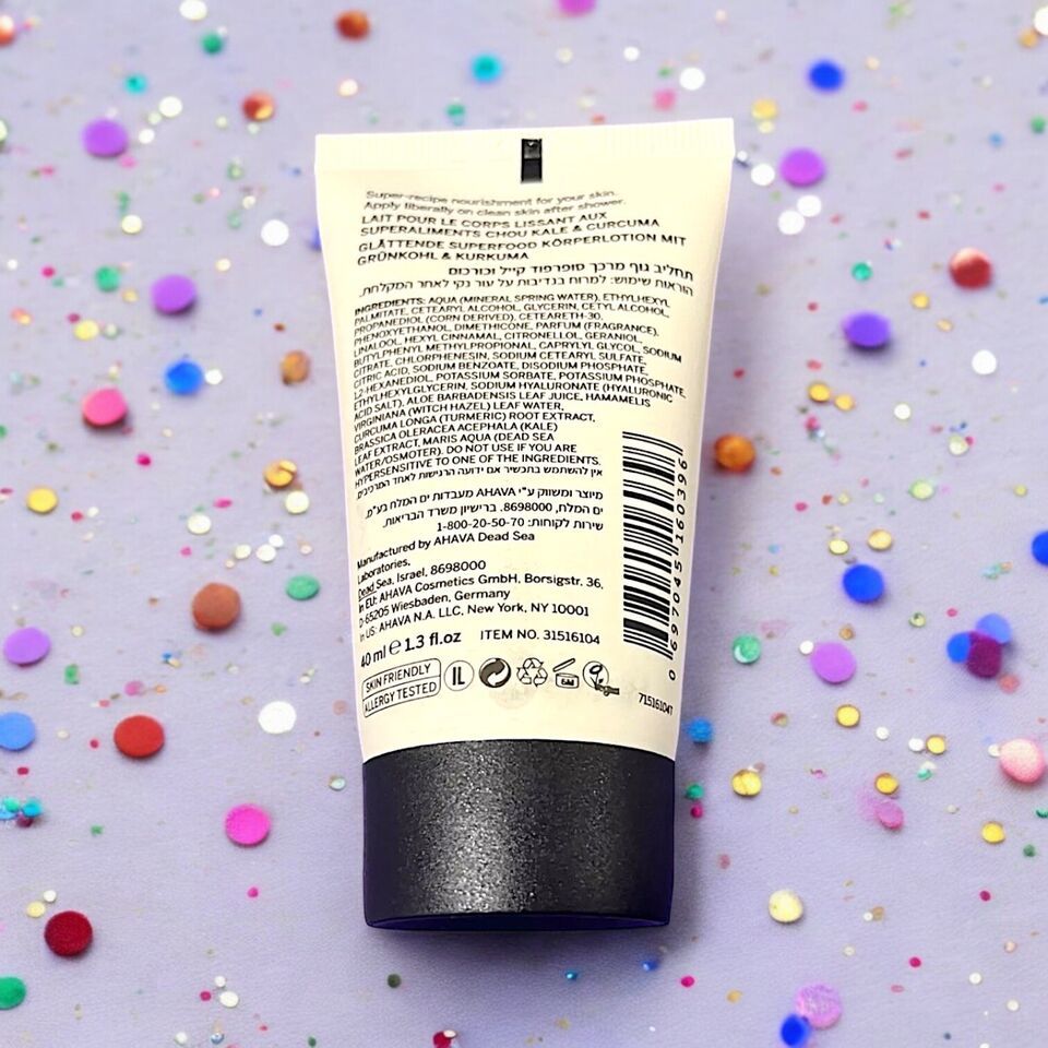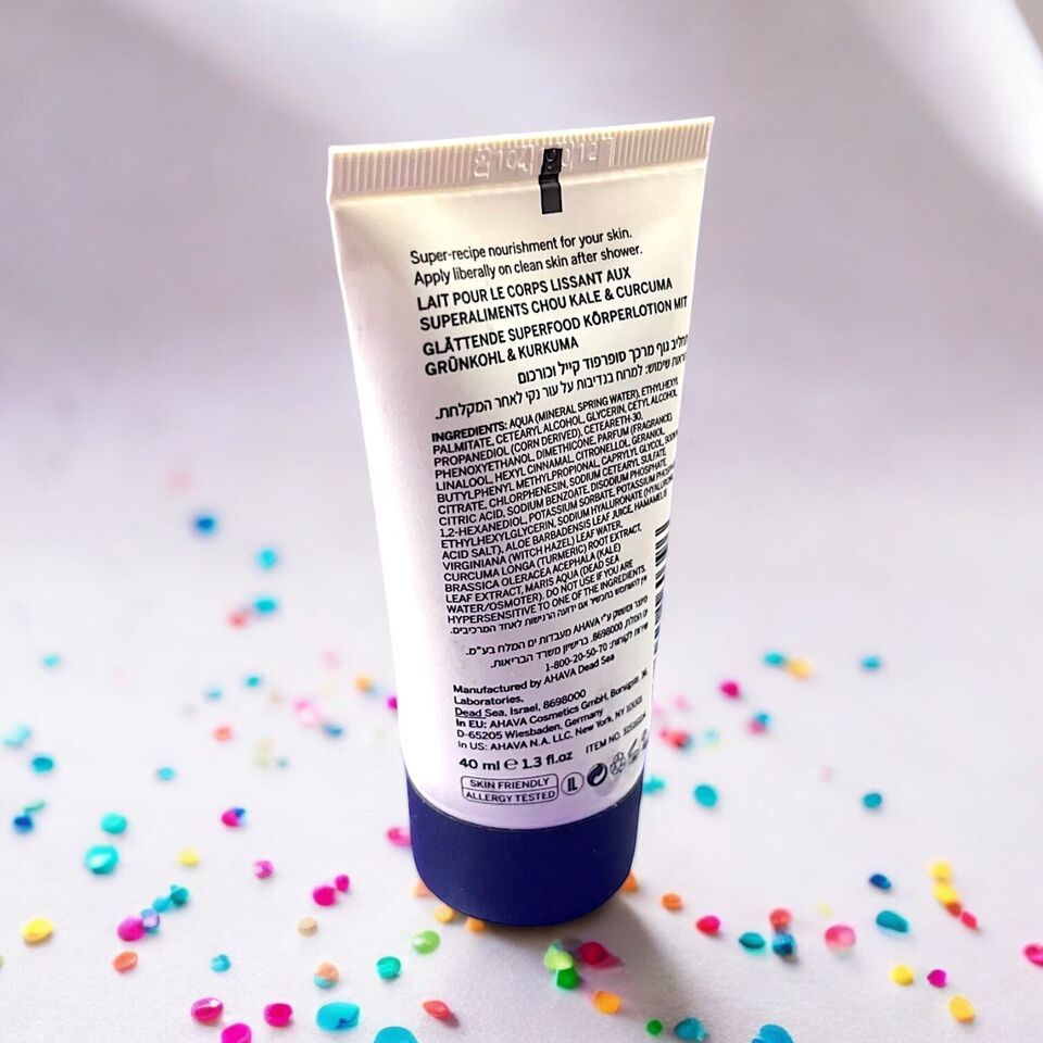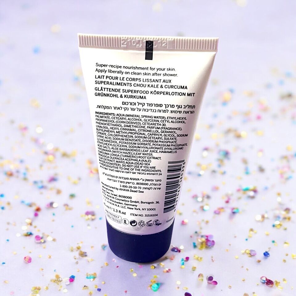 Ahava Superfood KALE TURMERIC Smoothing Body Lotion NEW 1.3 fl.oz Travel Size.