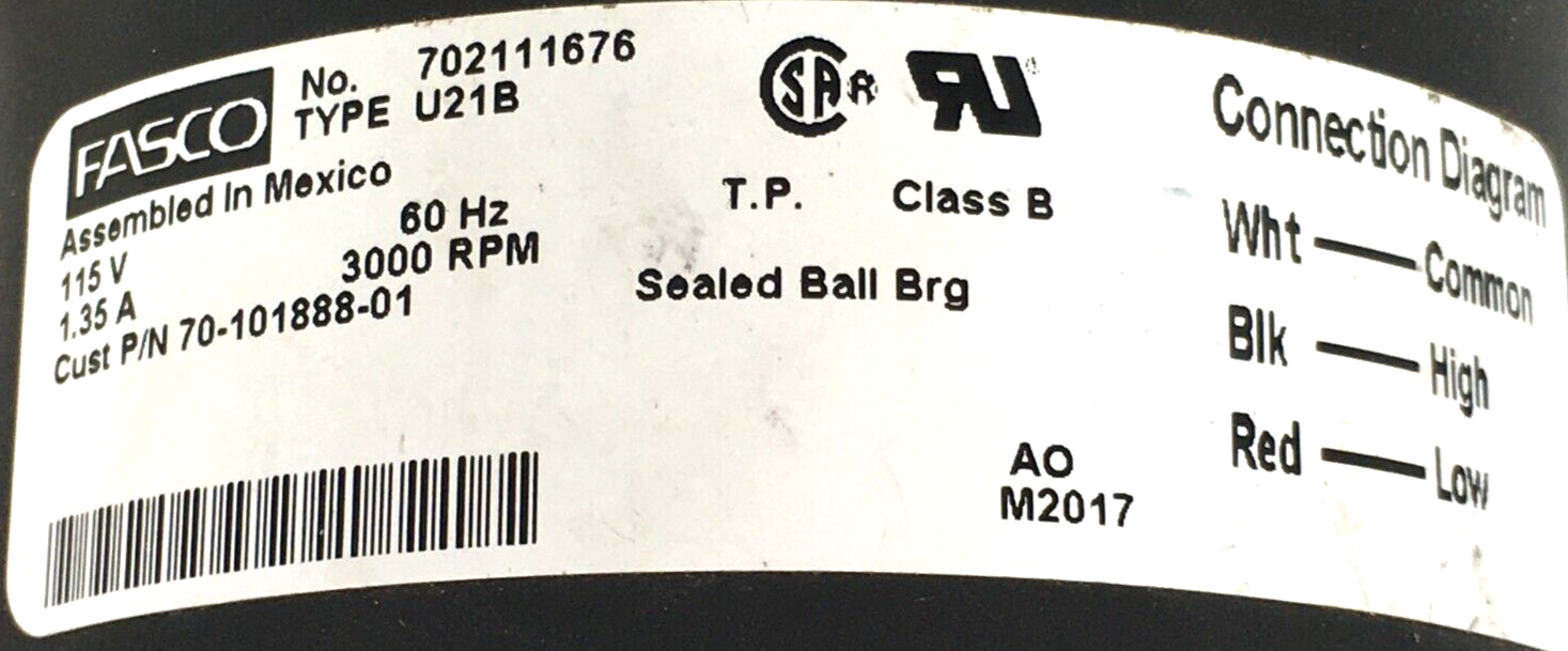 This is FASCO 702111676 U21B Draft Inducer Blower Motor Assembly 70-101888-01 115V 3000RPM used part.