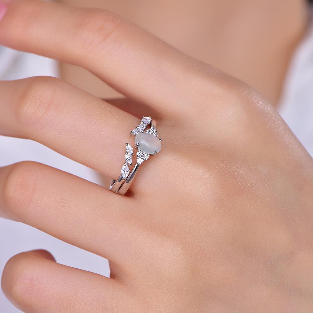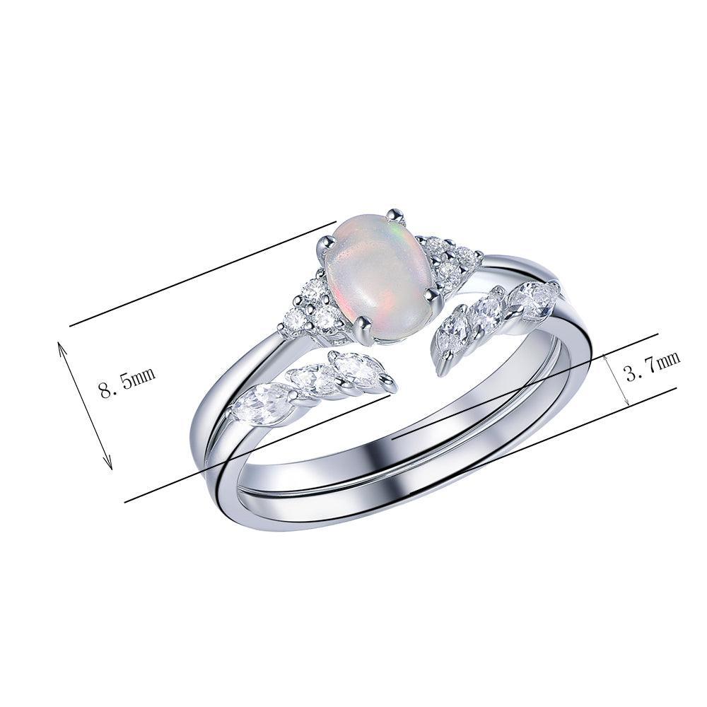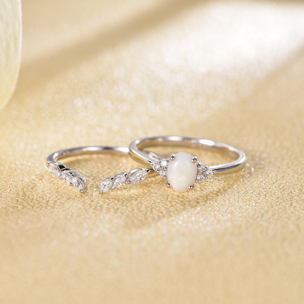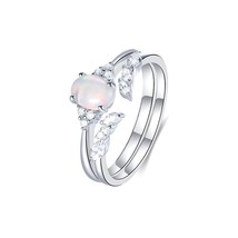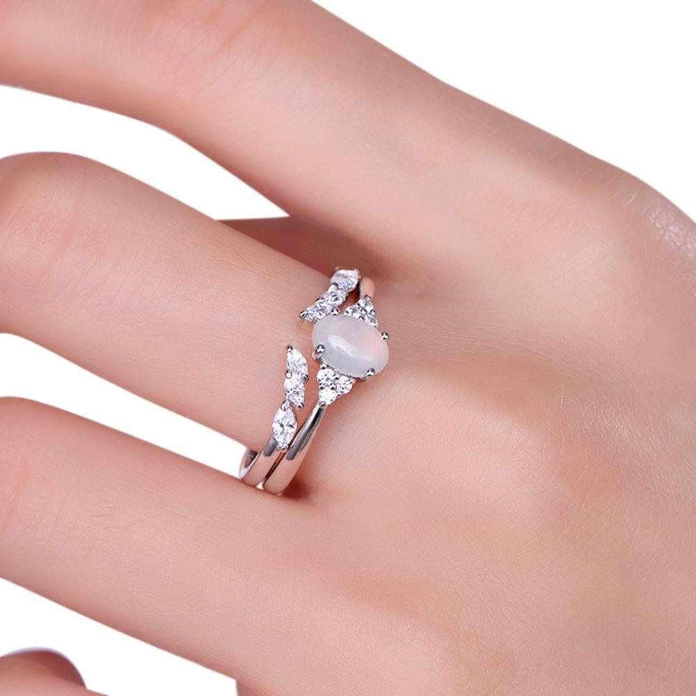 Trendolla Opal Stone Sterling Silver Ring Set Engagement Wedding Layer Band Ring