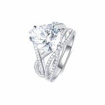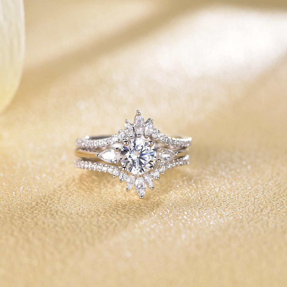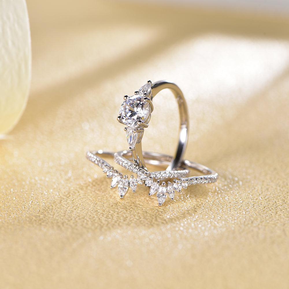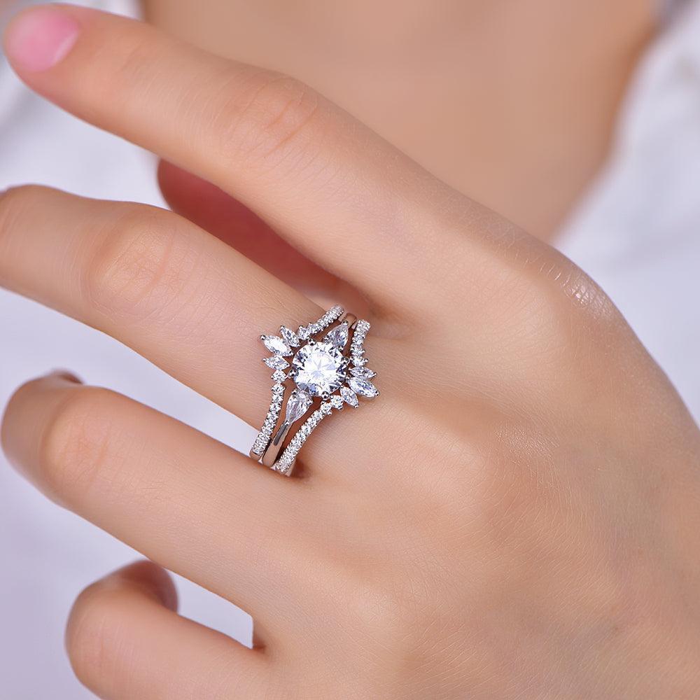 Trendolla Round Cut Stone Sterling Silver Ring Set Engagement Wedding Layer Band