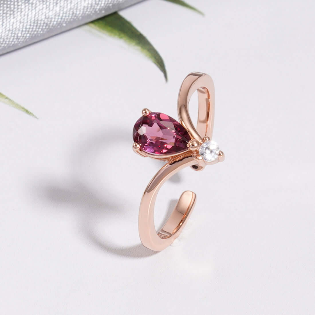 Drop Shape Garnet Adjustable Open-ended Ring