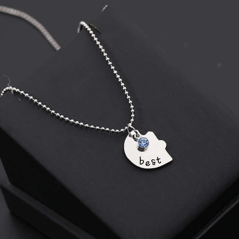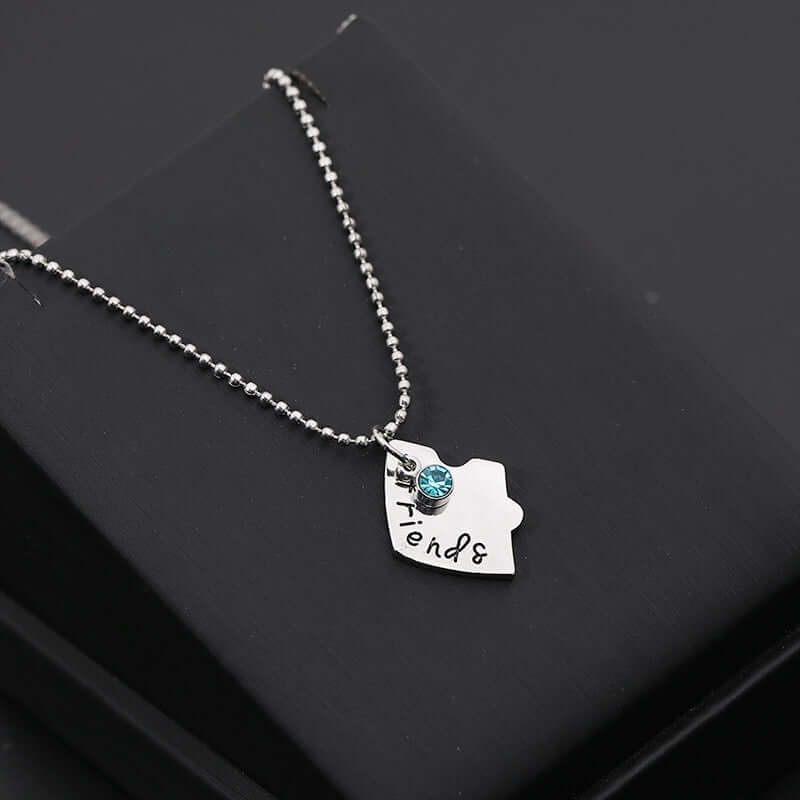Rhinestone Engraved Puzzle Friendship Pendant BFF Necklaces