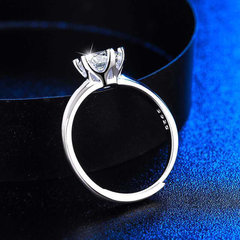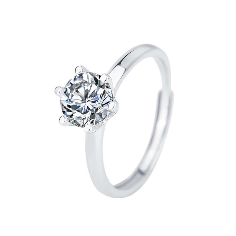 Simple Round Form Moissanite Adjustable Open-ended Ring