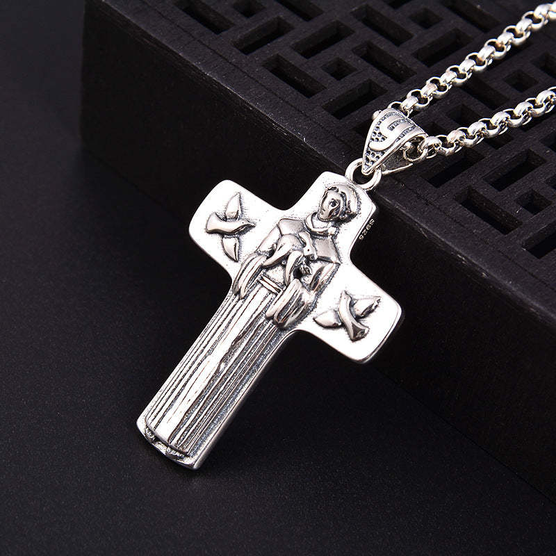 Sterling Silver Virgin Mary Cross Virgencita Necklace