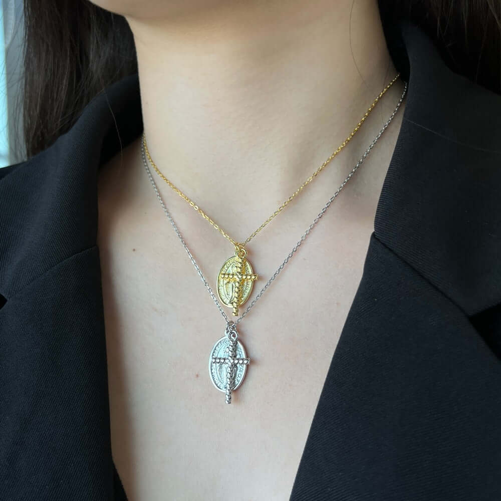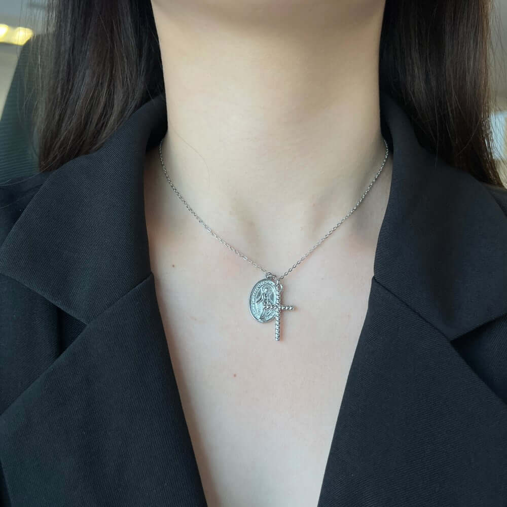 S925 Vintage Gold & Silver Virgin Mary Cross Virgencita Necklace