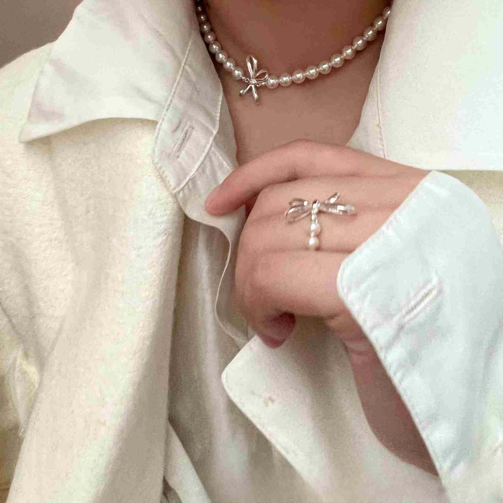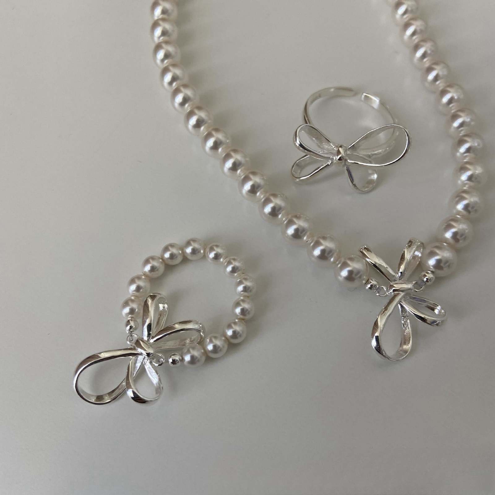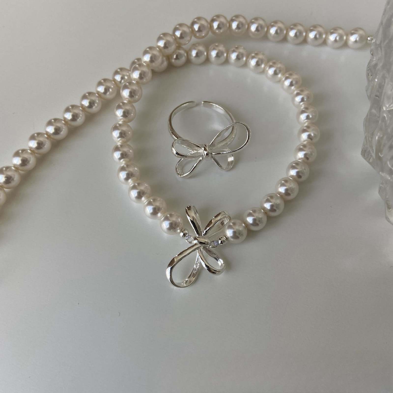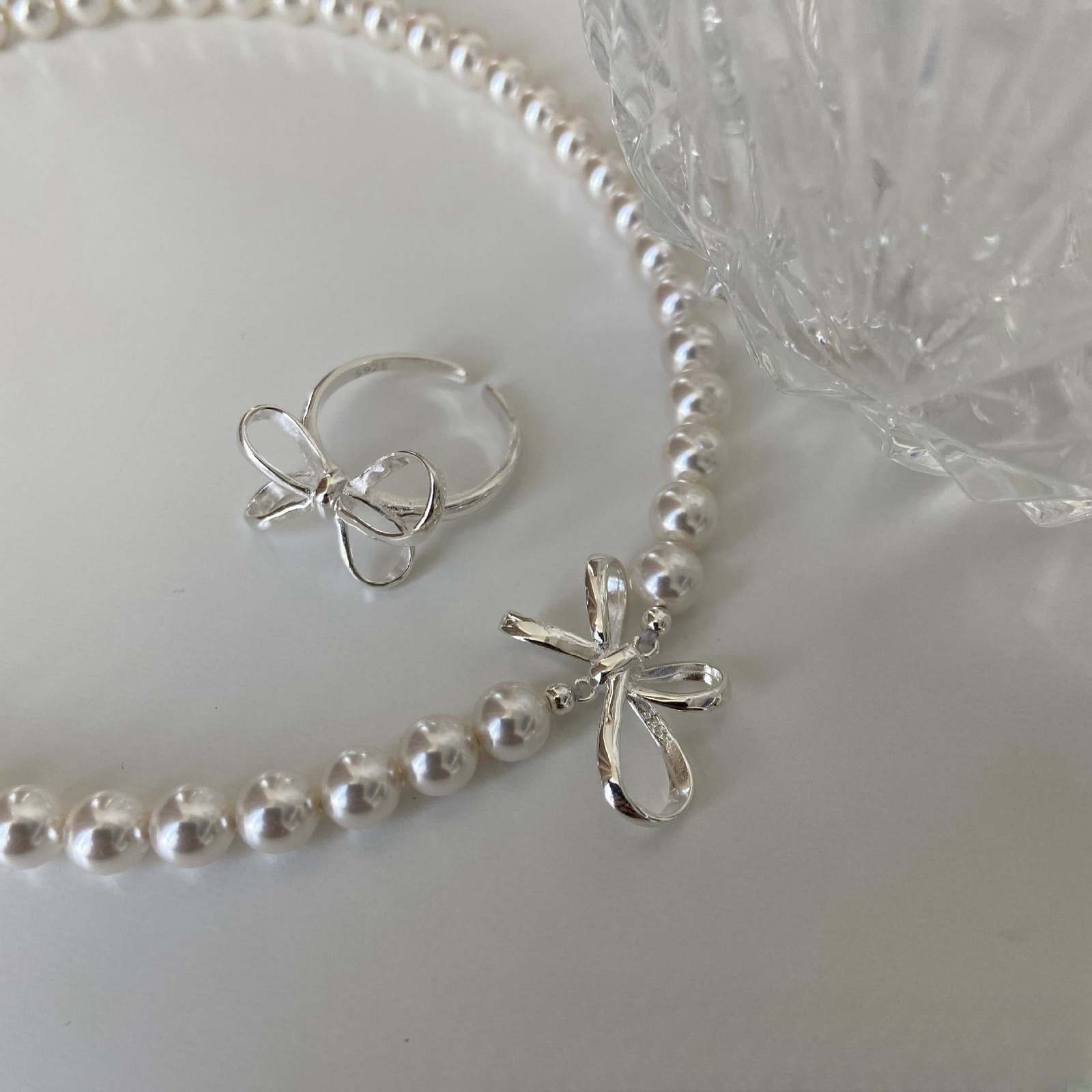 Silver Ribbon Knot Real Pearl Necklace and similar items