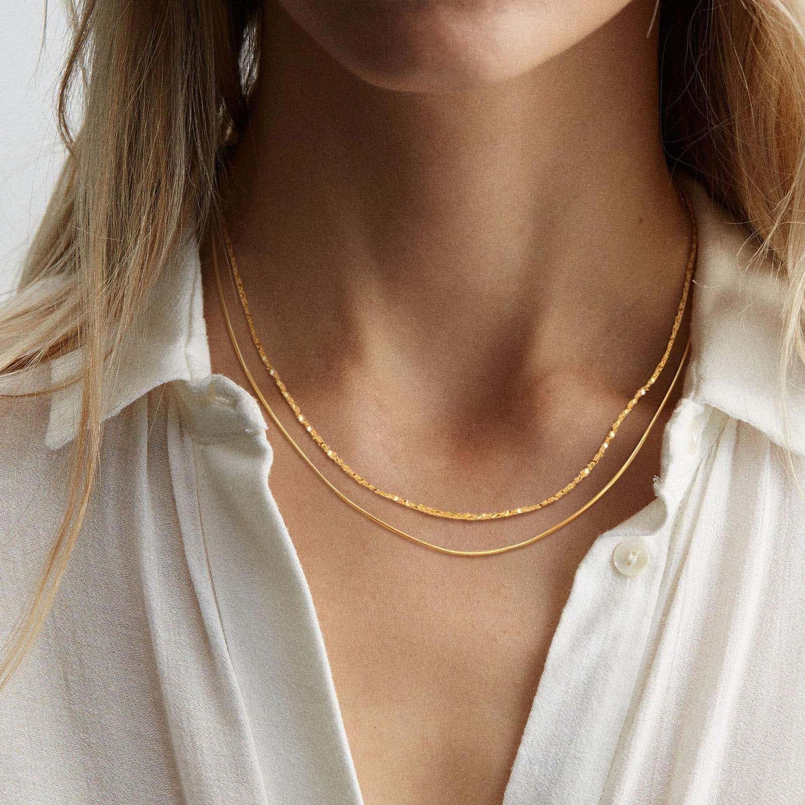 No-Tarnish Medical Titanium Shimmering Stacked Clavicle Chain Necklace