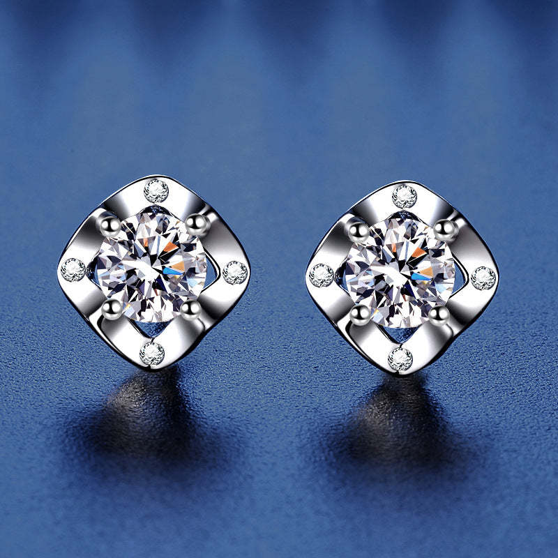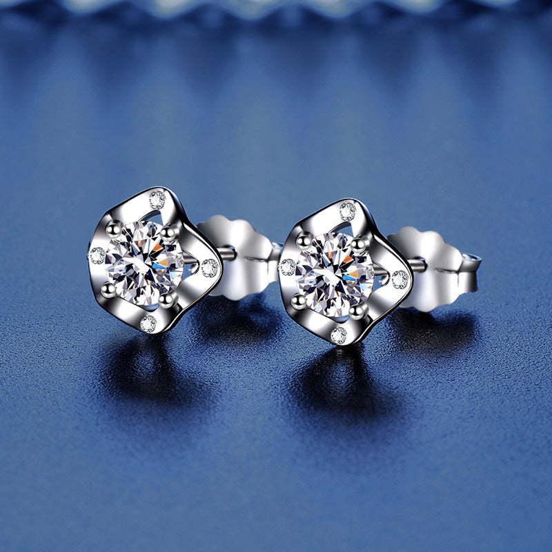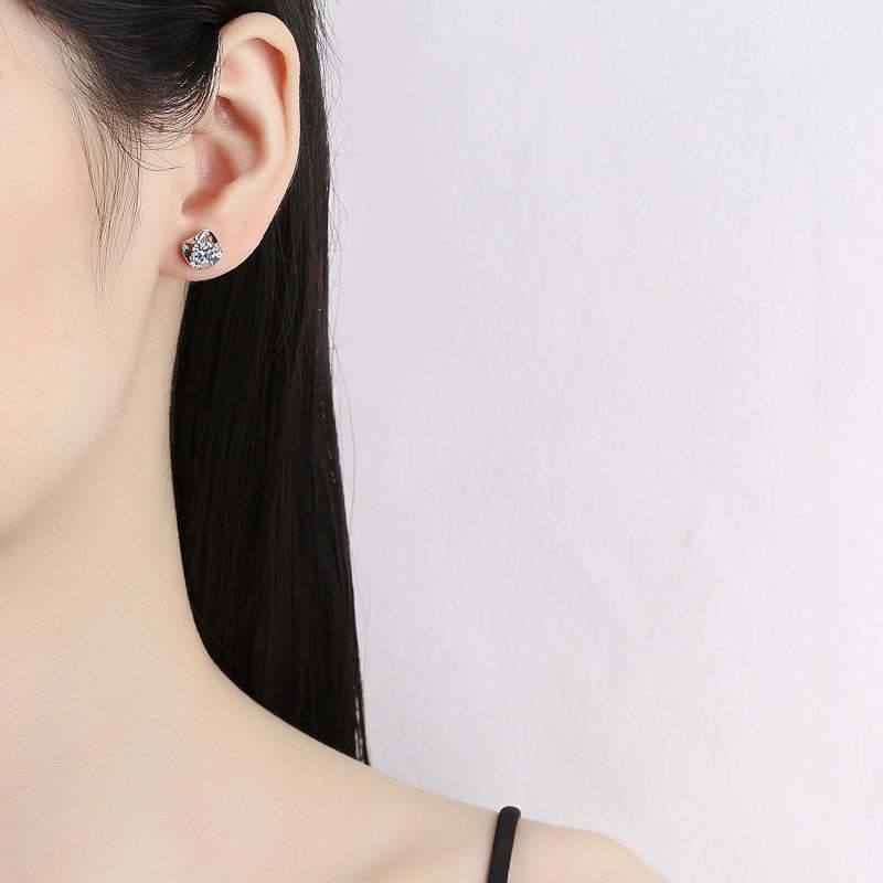 S925 Sterling Silver Fashion Clover Moissanite Earrings