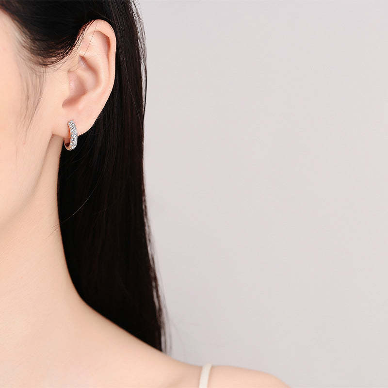 These 925 Sterling Silver Spiral Moissanite Huggie Earrings will bring sparkle and shine to any look. Featuring genuine moissanite stones set in sterling silver, the earrings are a timeless classic and perfect for any occasion.