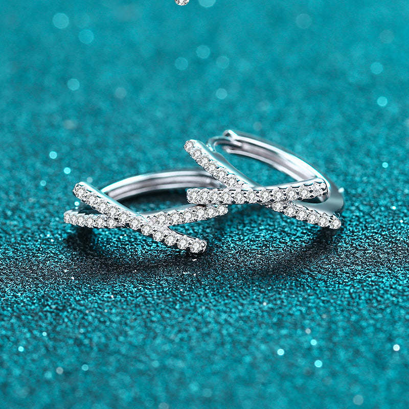 Letter X Sterling Silver Round Moissanite Huggie Earrings