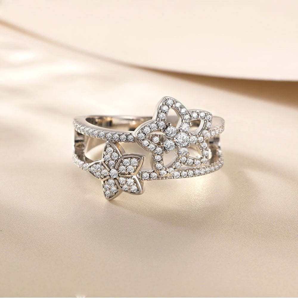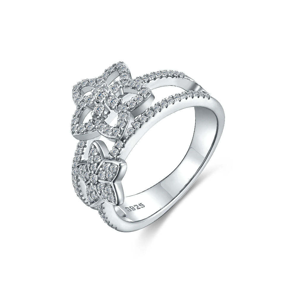 S925 Sterling Silver Pentagram Toi et Moi Ring