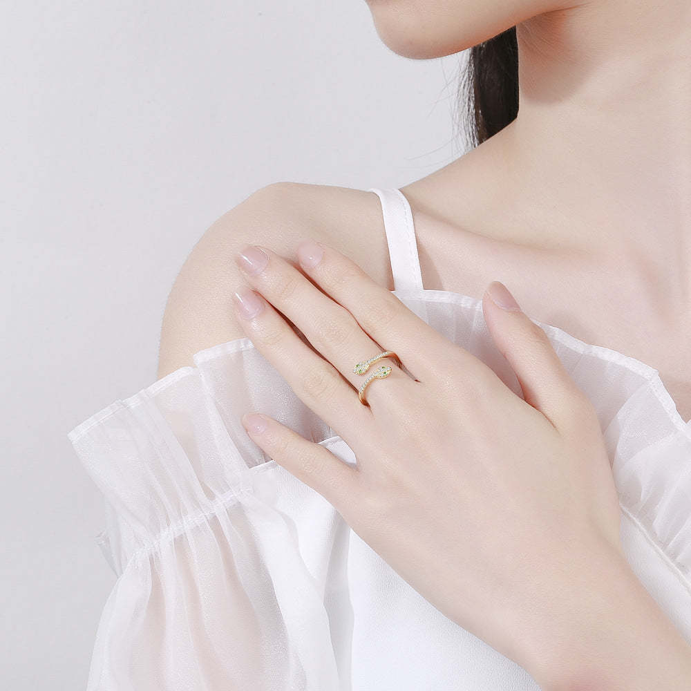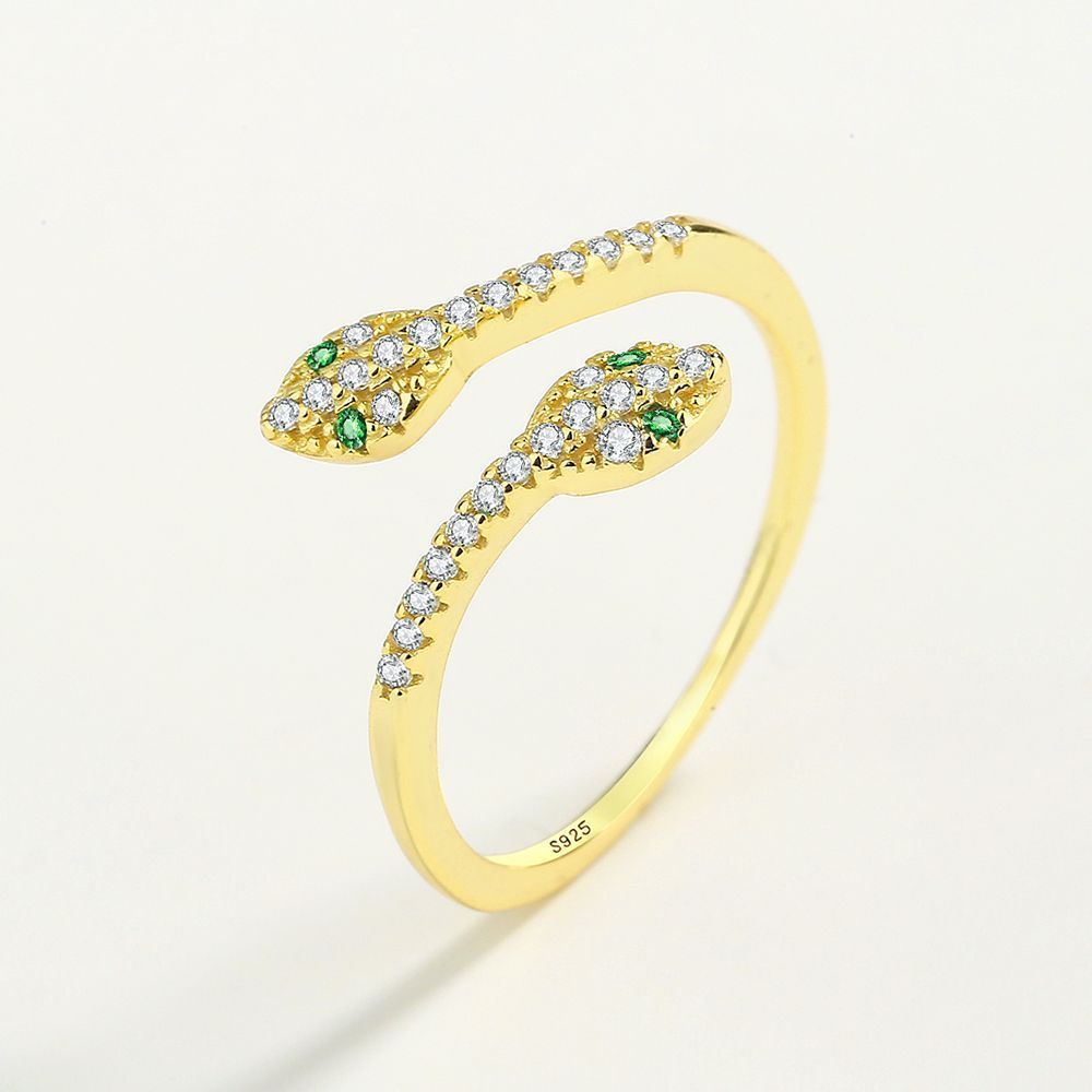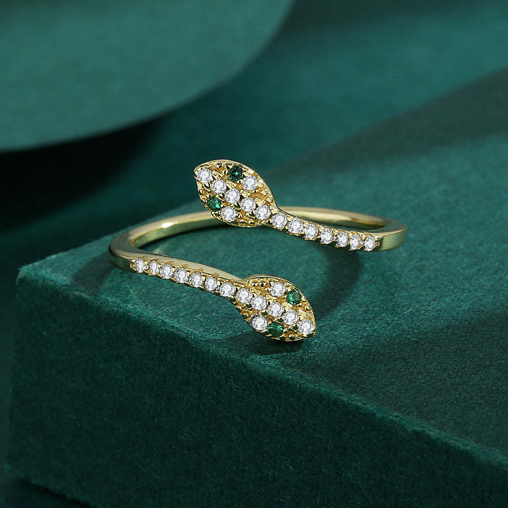 "Wrap your finger in luxurious whimsy with our Two-Headed Snake Round Crystal Toi et Moi Ring. This unique ring features not one, but two heads of a charming snake crafted from sparkling crystals. Embrace the duality of nature with this playful accessory!"