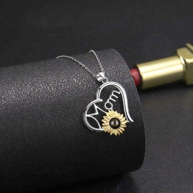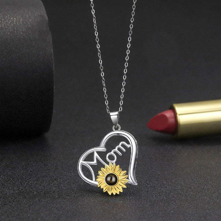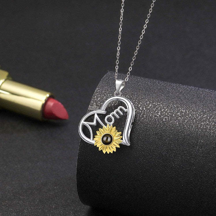 S925 Sterling Silver Sunflower Necklace with Picture Inside