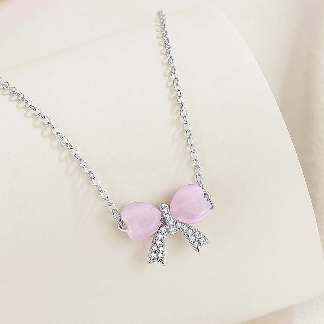 Tie your love like a bow with this 925 Silver Bow Sweetheart Necklace. Made with high-quality silver, this necklace is sure to make a statement. Perfect for any occasion, this necklace will add a touch of charm and elegance to any outfit. Make a statement with a touch of charm and elegance! Perfect for any occasion, you can tie your love like a bow with this 925 Silver Bow Sweetheart Necklace, beautifully crafted with high-quality silver.